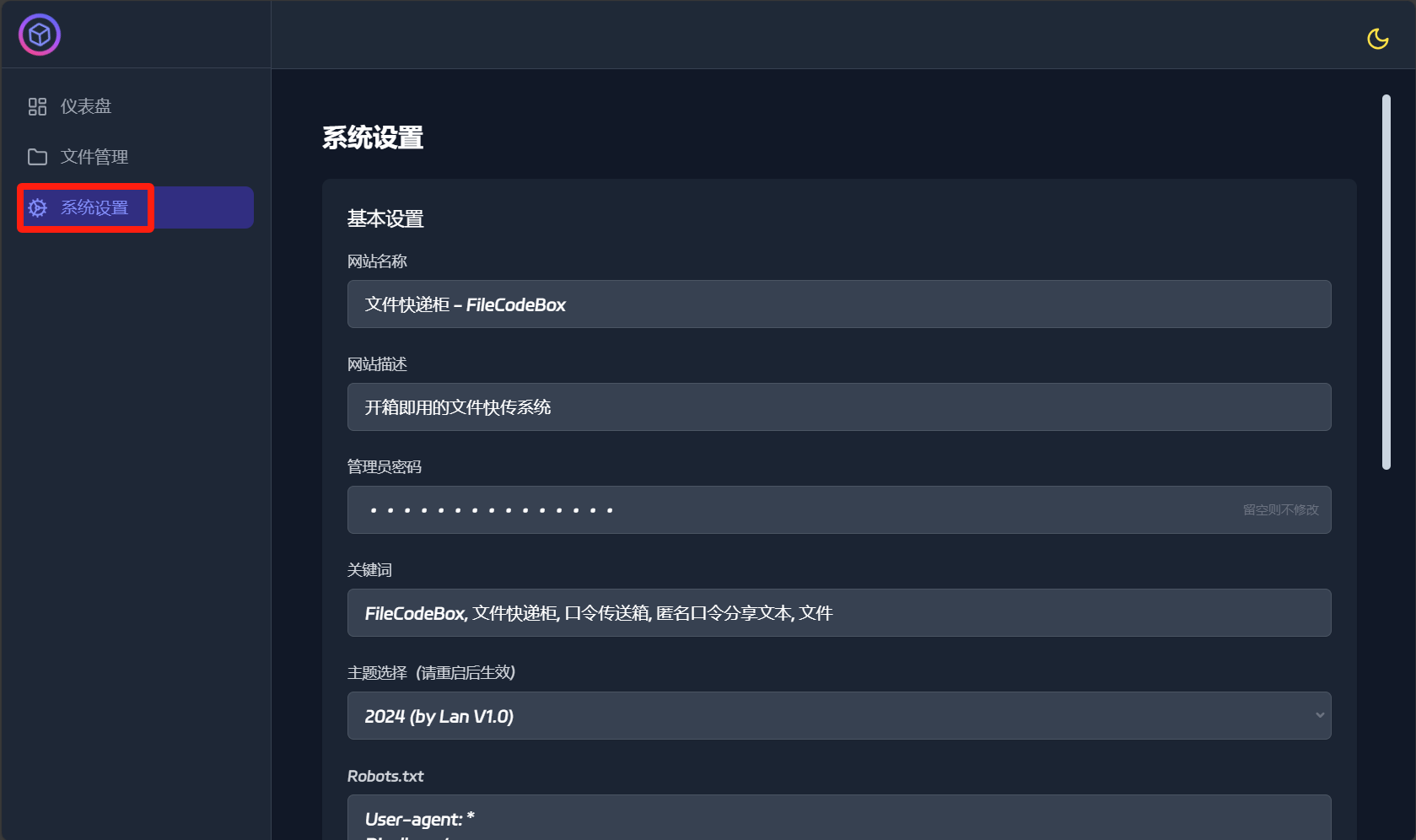 初始默认密码:FileCodeBox2023