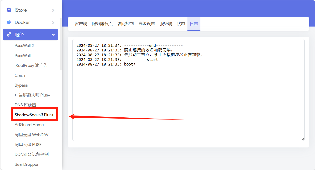 点击OpenWrt的服务,随意选择一个ShadowSocksR Plus+,用作魔法服务。