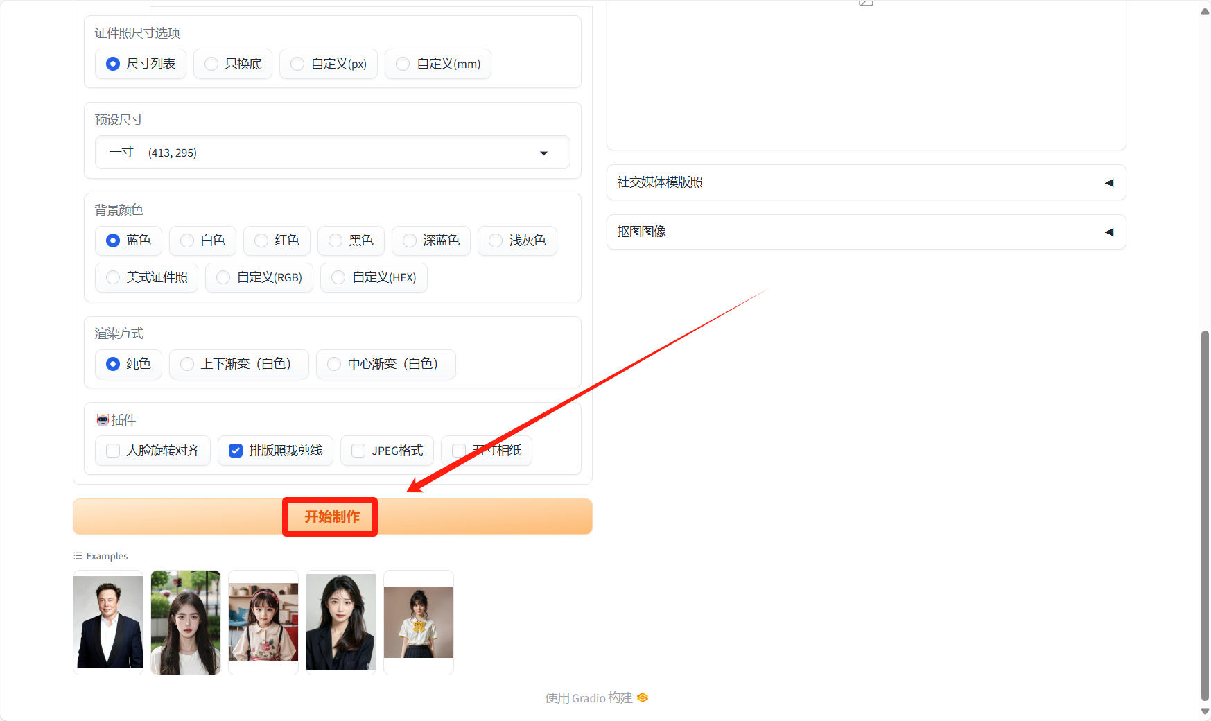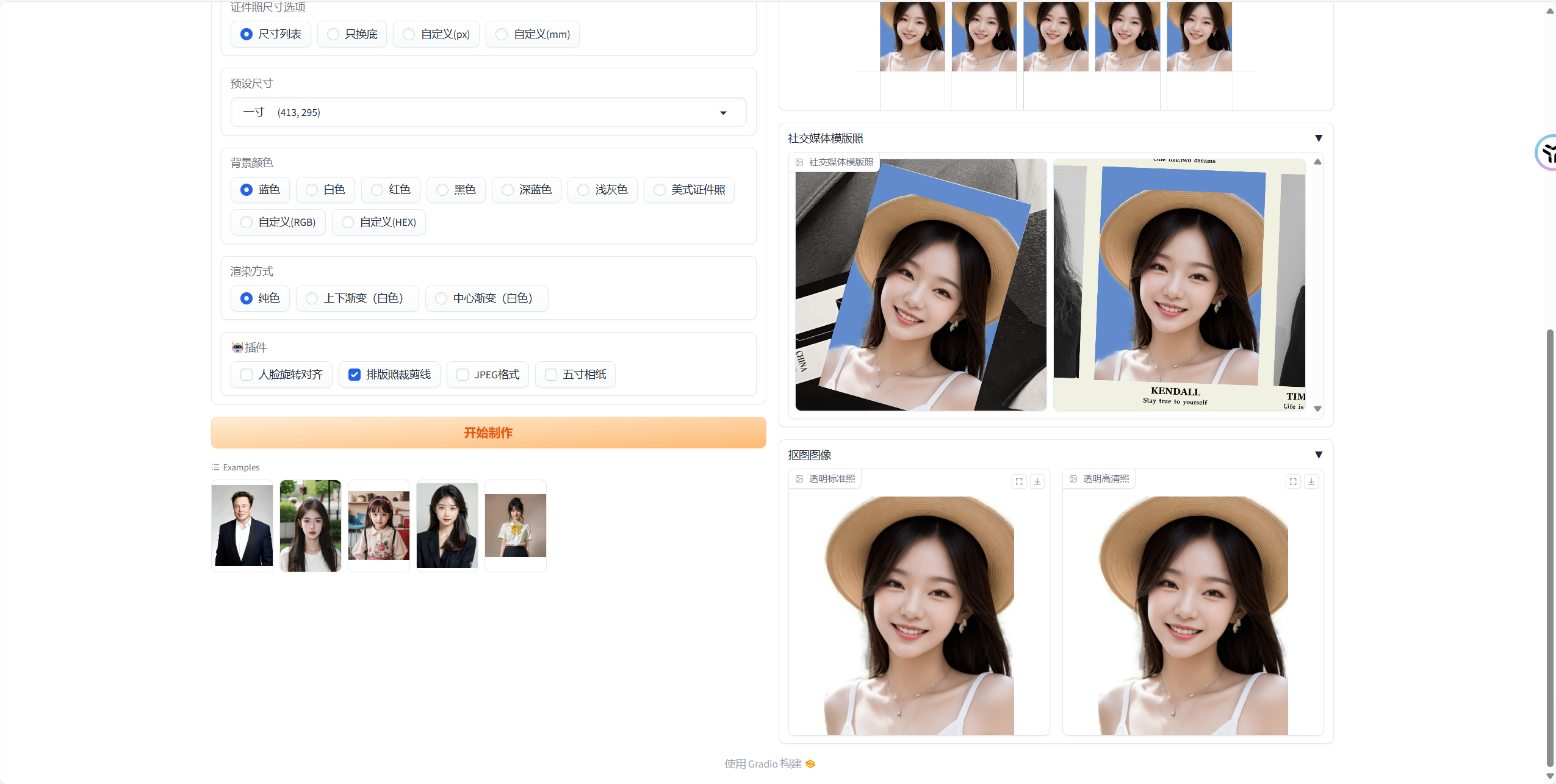 2024.09.18: Gradio Demo增加分享模版照功能、增加美式证件照背景选项