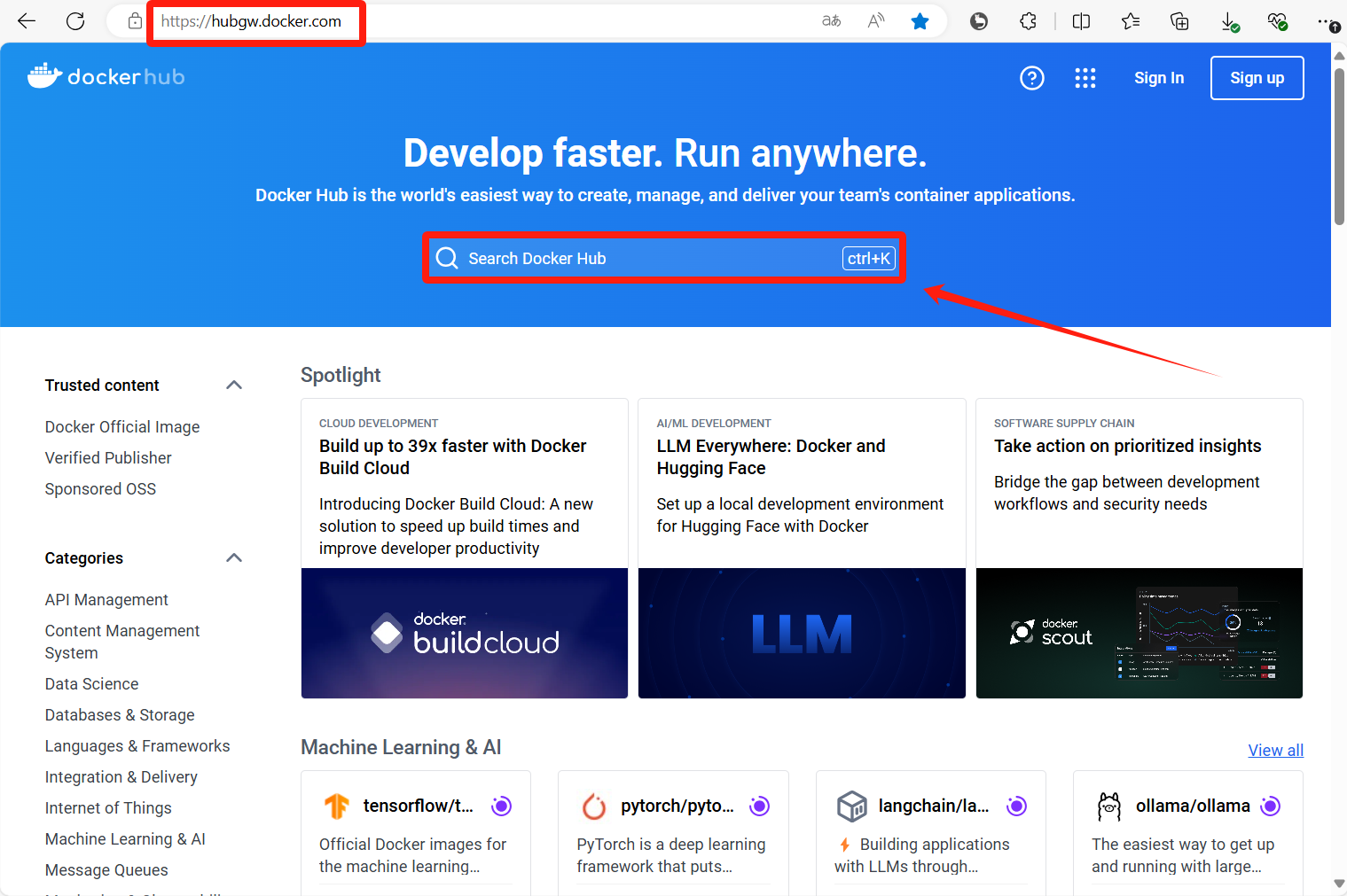 访问DockerHub官网,搜索你需要使用的Docker镜像。