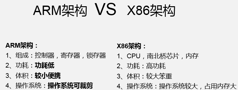 X86和ARM架构最本质的区别在于复杂指令集和精简指令集。