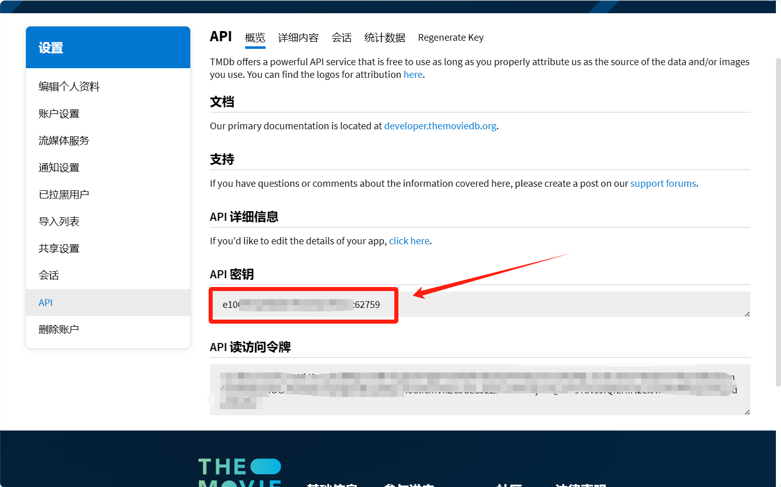 无论Video Station、tMM、nastool,只要想刮削TMDB数据,都需要这个密钥!!!请勿泄露。