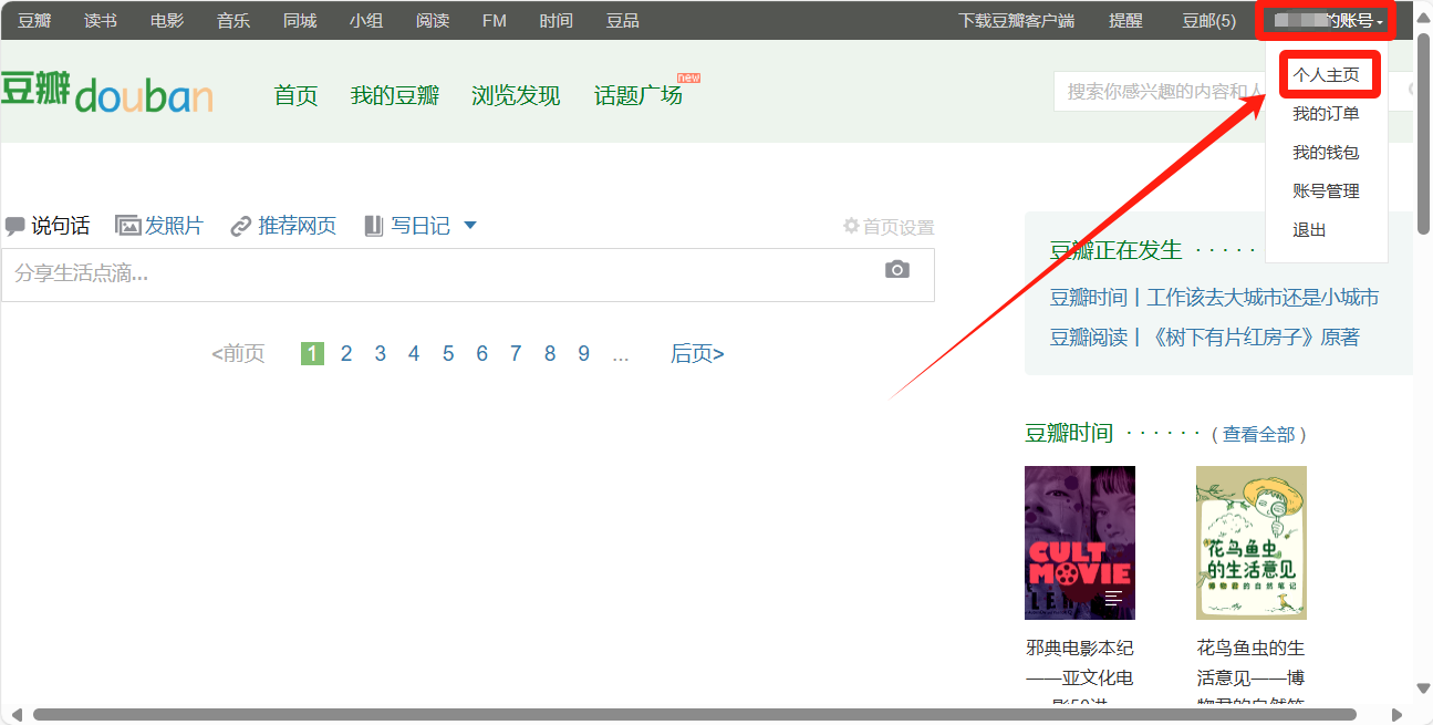 登陆后在右上角点击头像(头像图标可能不显示,你知道是这个位置即可。)