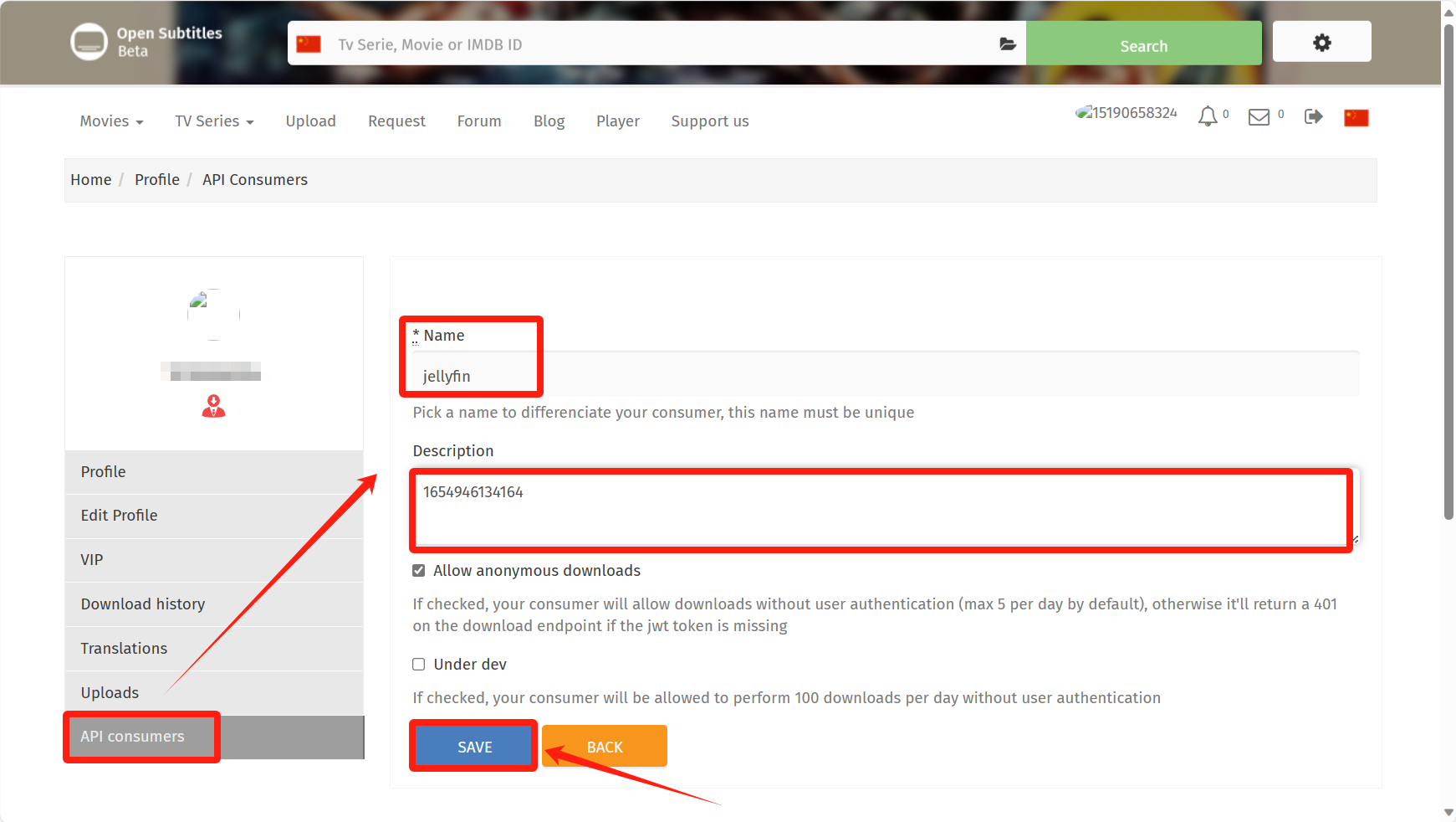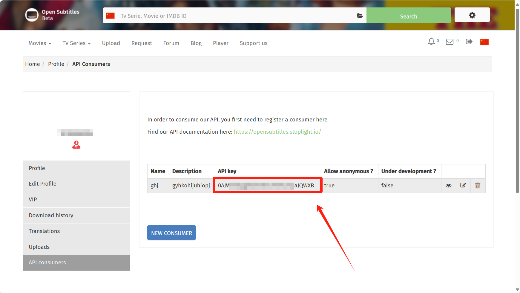 点击API consumers(可选项,新版已经不需要填写API密钥了。)