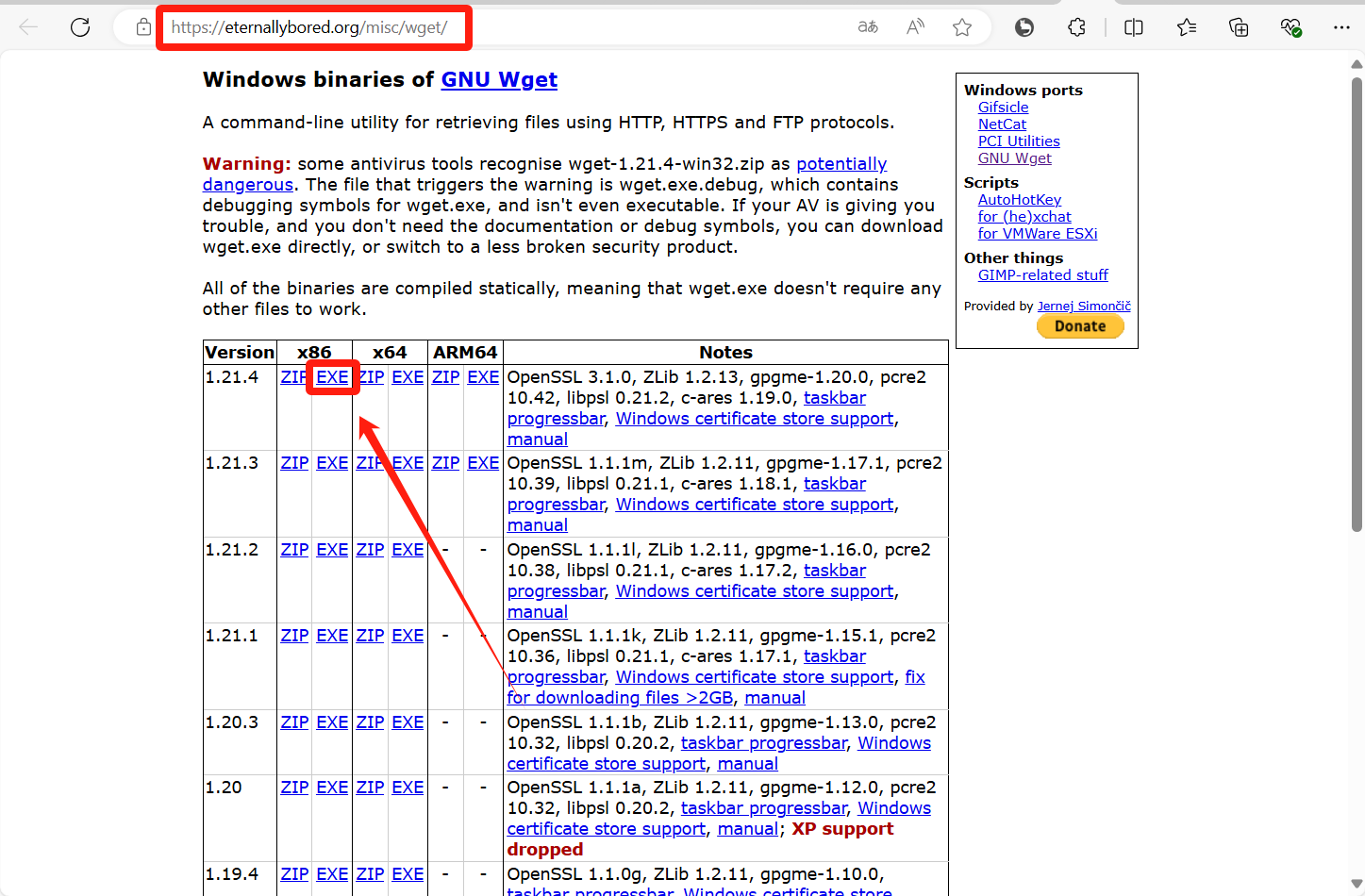 文件下载地址 https://eternallybored.org/misc/wget/