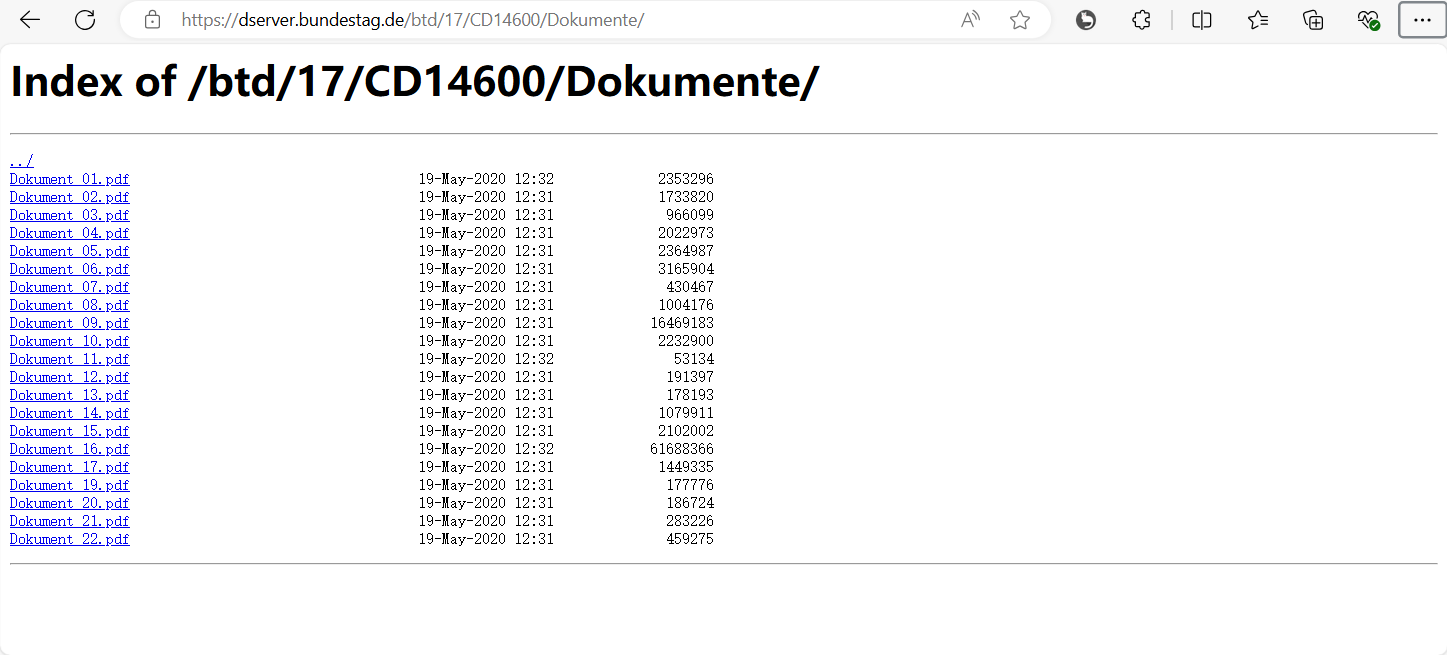 (注意:下载地址最后面要加/符号,表示下载当前路径下的所有文件。)#演示使用作者演示使用的地址 https://dserver.bundestag.de/btd/17/CD14600/Dokumente/