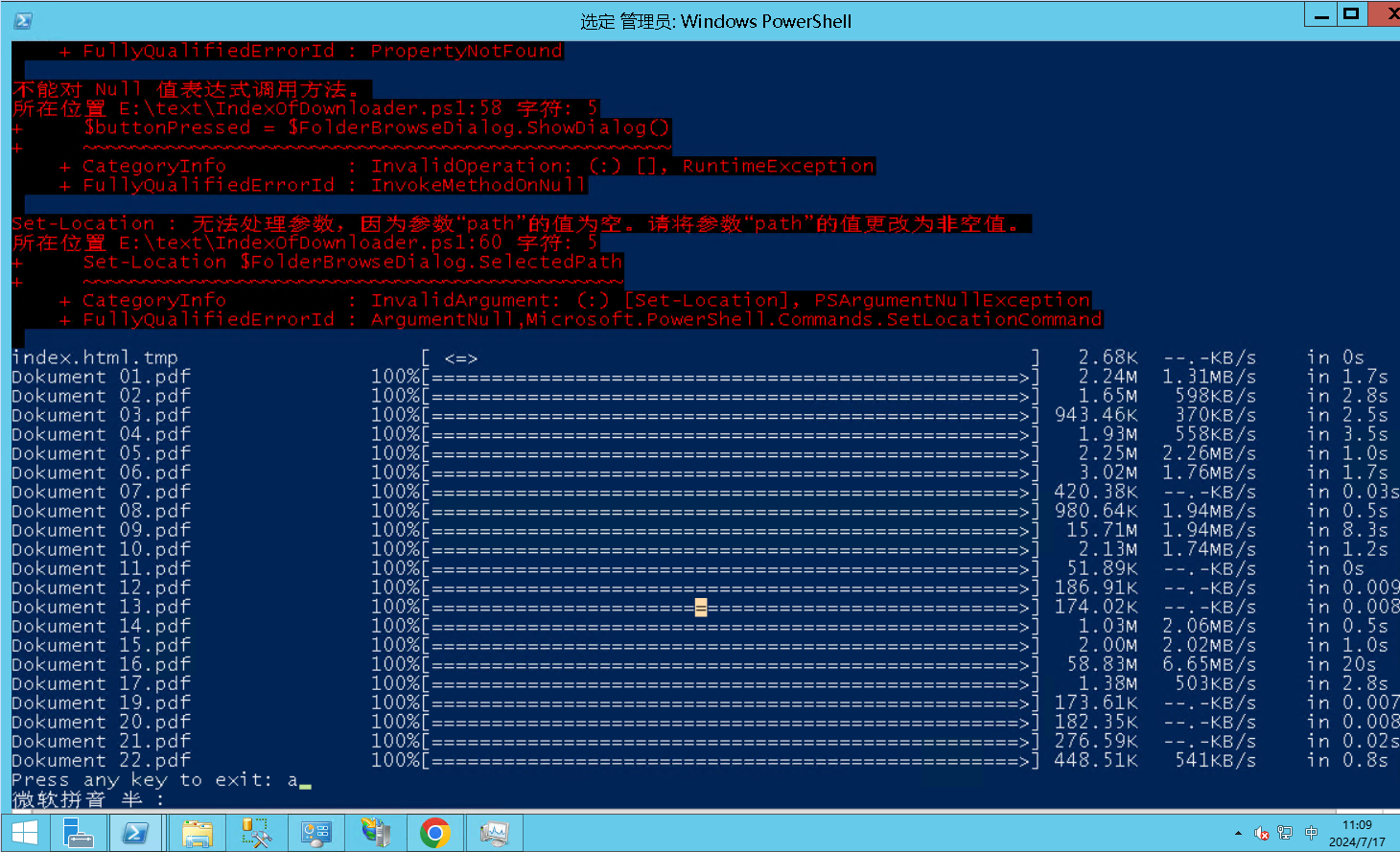 文件下载完毕之后直接关闭Windows PoweShell窗口就行。