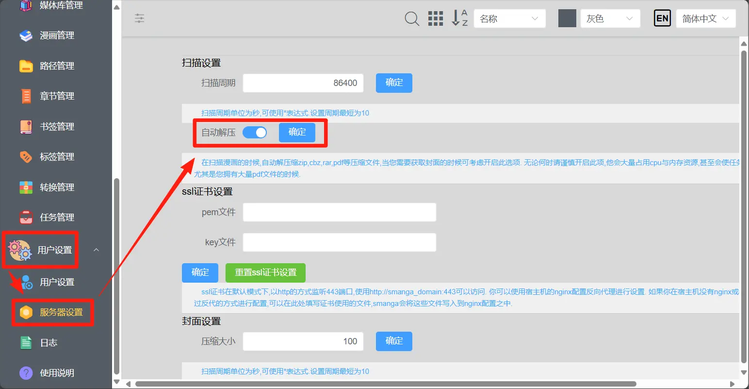 • 点击用户设置--服务器设置,勾选自动解压后点击确定。
