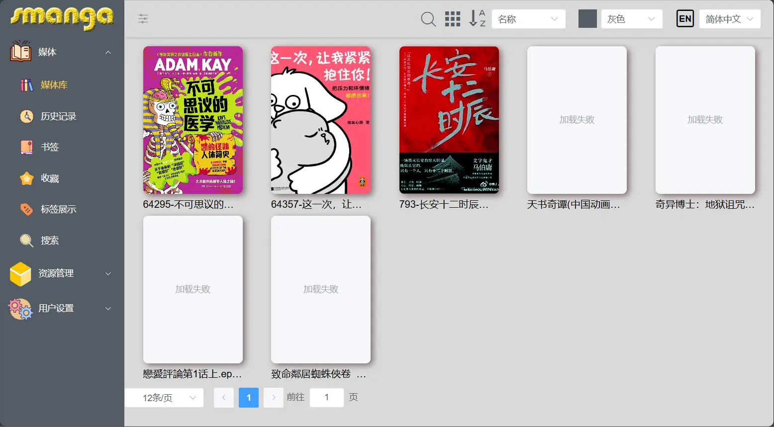 4. 由于我这边平常不关注漫画,所以没有漫画资源,在编写教程时是随意下载的几个格式的文件,实际部署时客户自行准备的资源是全部识别的。