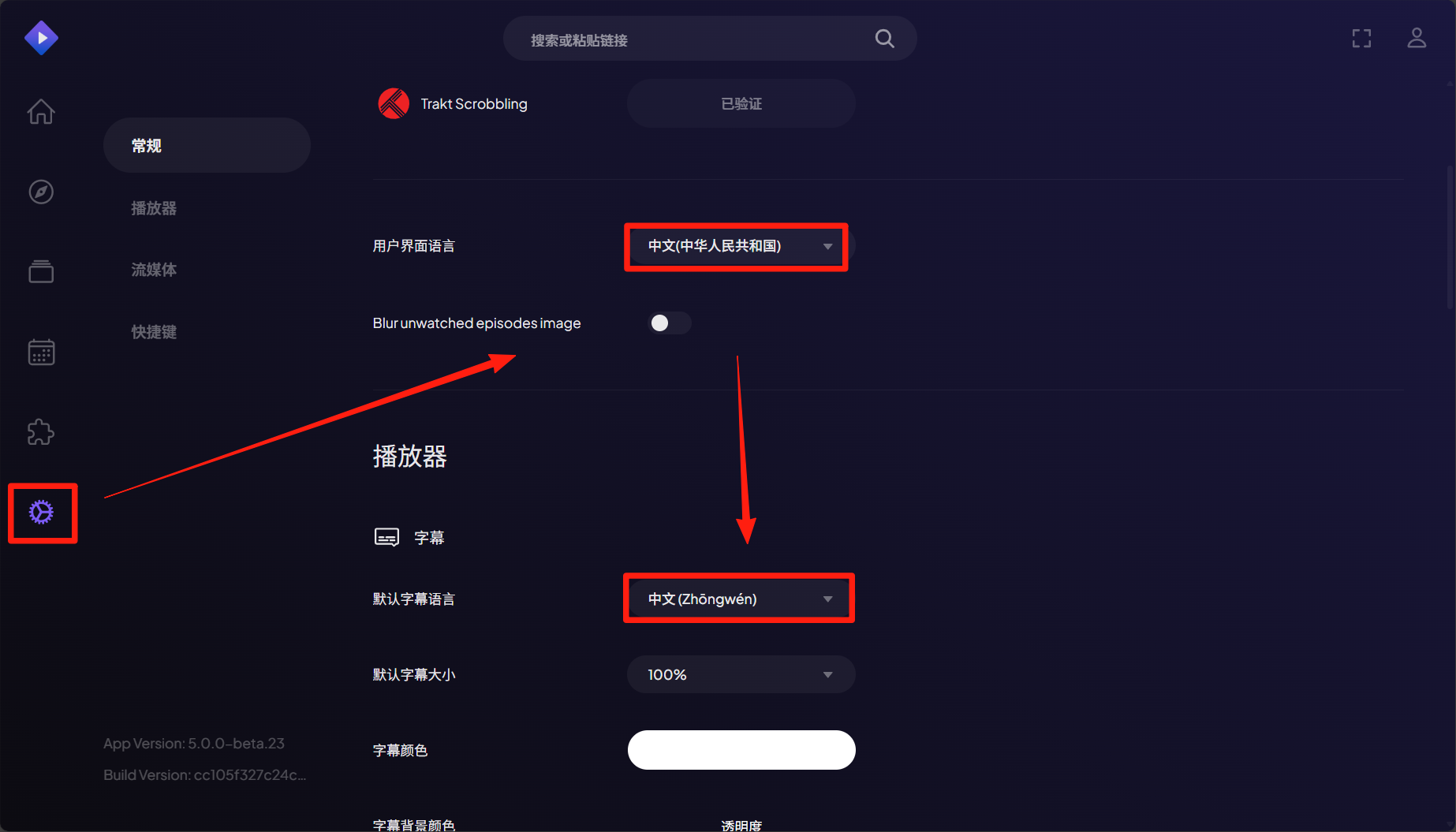 点击左侧的设置,将用户语言界面、默认字幕语言、默认音频都选择为中文(自动保存)。