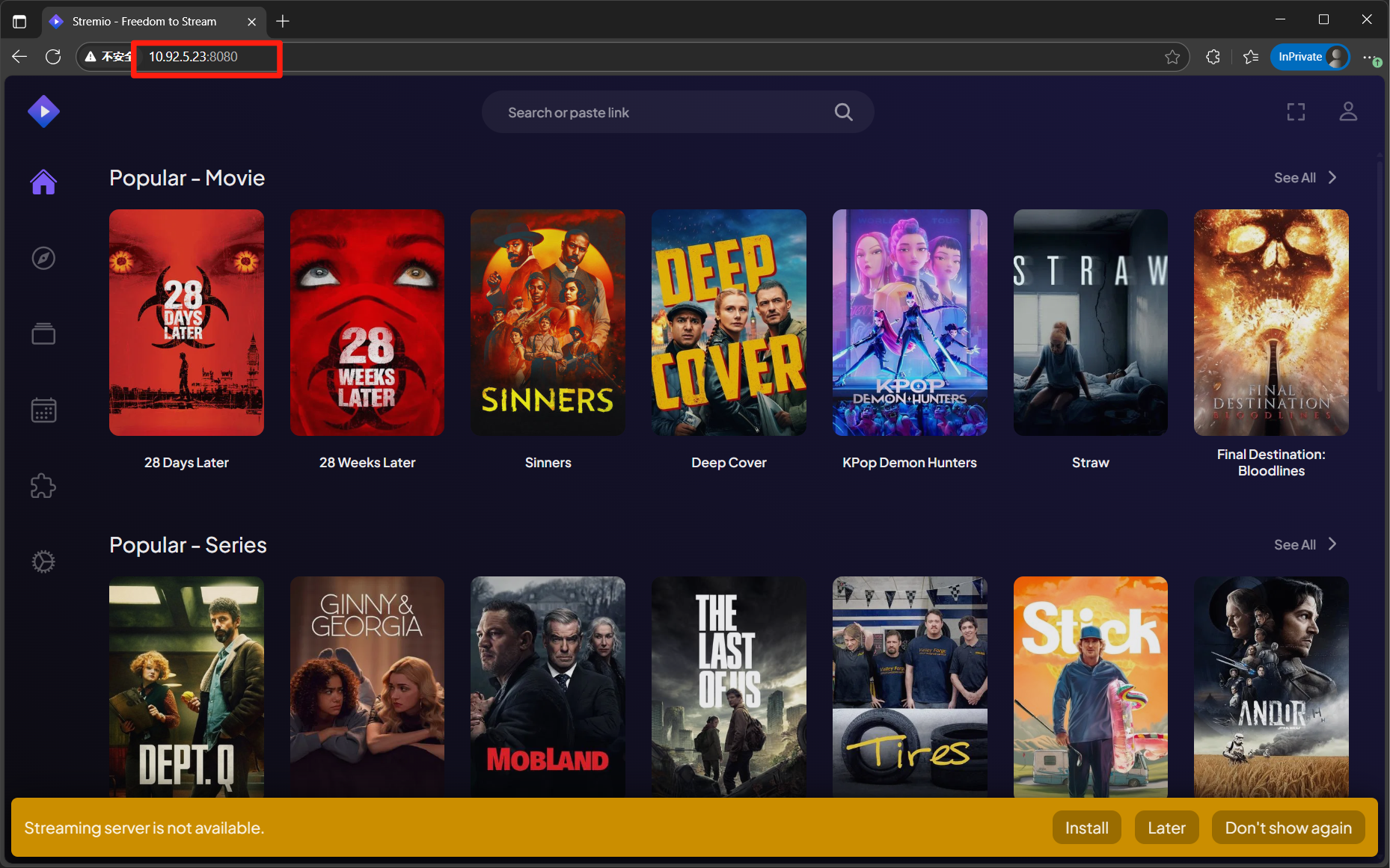通过强大的插件(Addons)系统,让Stremio 能瞬间聚合全网影视、剧集、直播、甚至短剧资源,直接在你熟悉的Docker容器里跑起来。想看什么?搜就完了!资源秒现,点开即播,告别漫长的下载等待和硬盘空间告急。更酷的是支持种子流播放(Torrent Streaming),边播边“下”(其实不占空间),体验丝滑!