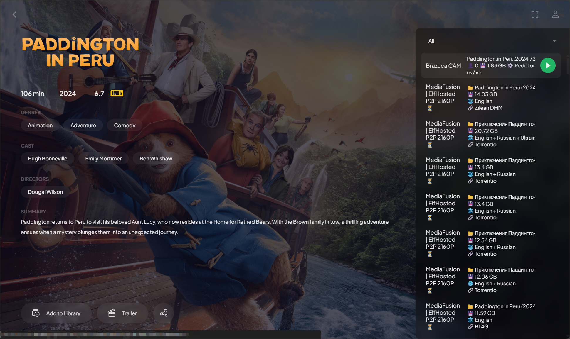 通过插件(Addons),一站式聚合电影、剧集、动漫、直播、体育、YouTube、短剧等全网资源。搜一次,看全部。