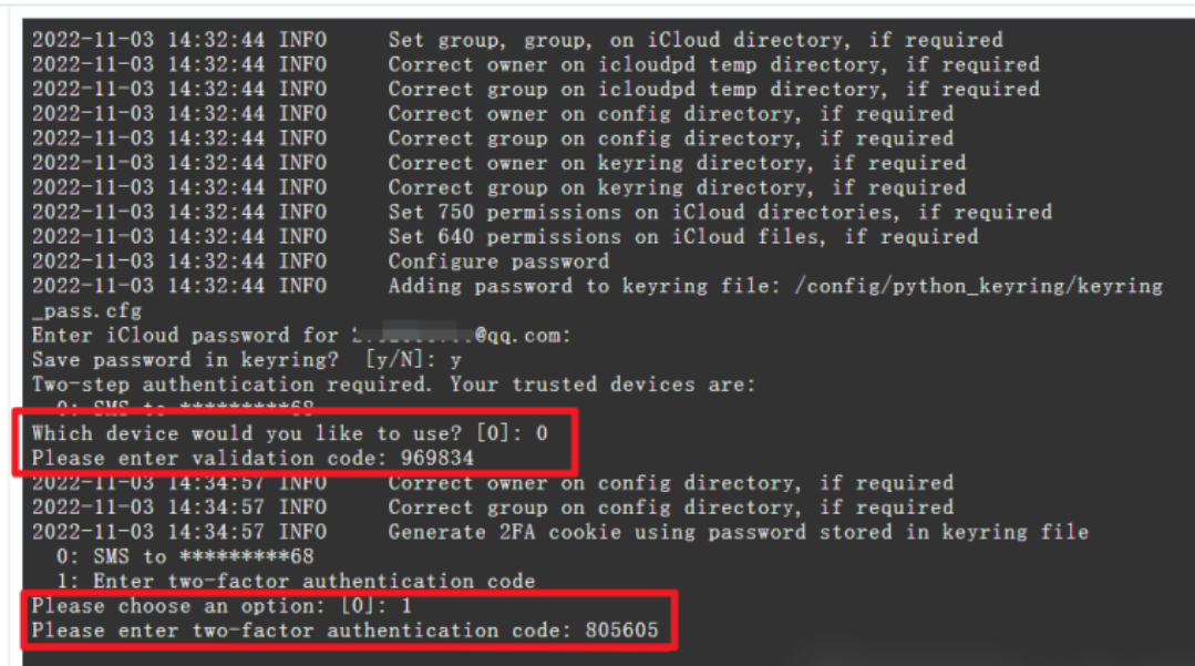 sudo docker exec -it iCloud /bin/sh启动脚本,开始配置容器内Apple ID的MFA认证。