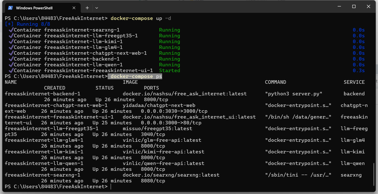 Docker安装FreeAskInternet搜索聚合器+答案生成器