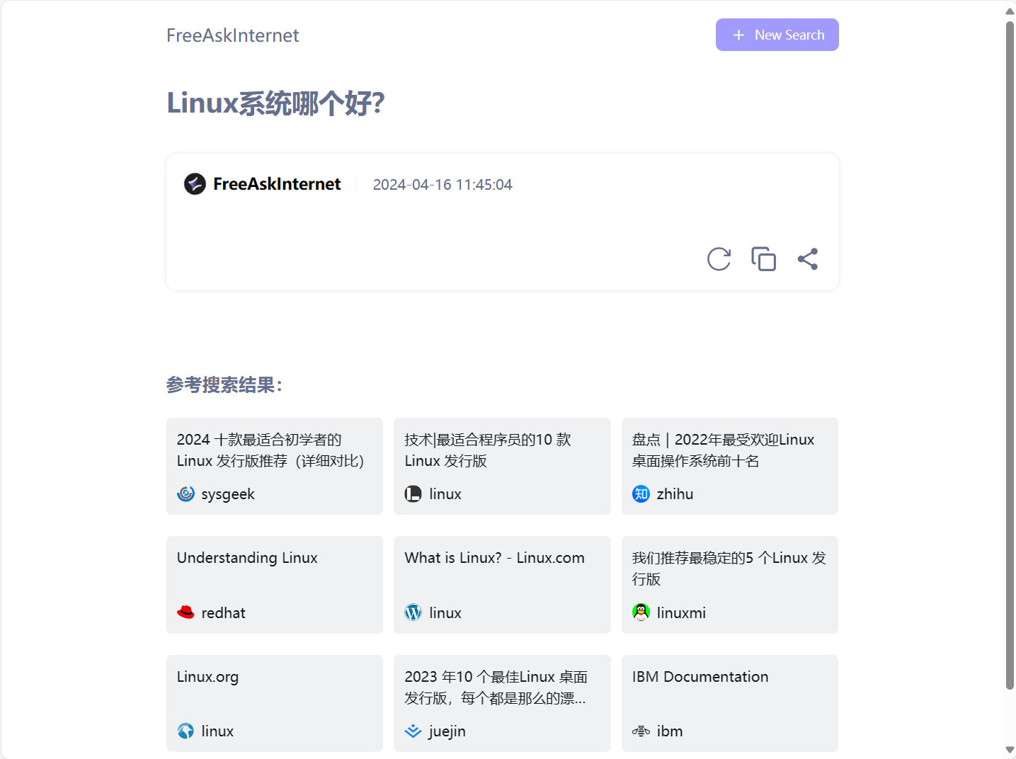 抓取搜索结果链接内容并传递给 ChatGPT3.5 / Kimi / Qwen / ZhipuAI / ollama (通过使用自定义 llm),要求 LLM 根据此内容作为参考回答用户问题。