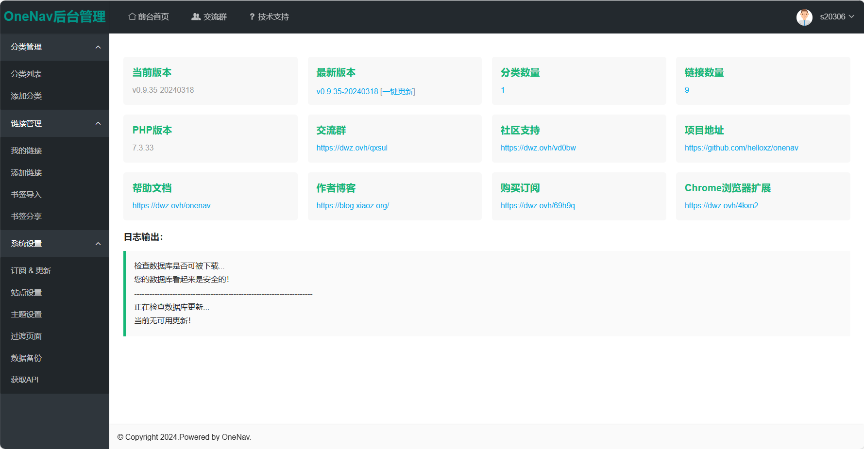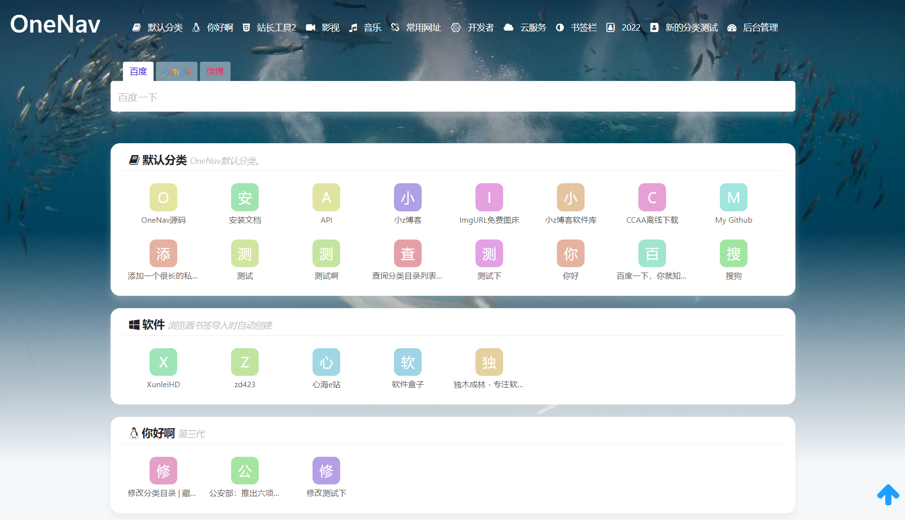 OneNav是一款开源免费的书签(导航)管理程序,使用使用PHP + SQLite 3开发,界面简洁,安装简单,使用方便。OneNav可帮助你将浏览器书签集中式管理,解决跨设备、跨平台、跨浏览器之间同步和访问困难问题,做到一处部署,随处访问。