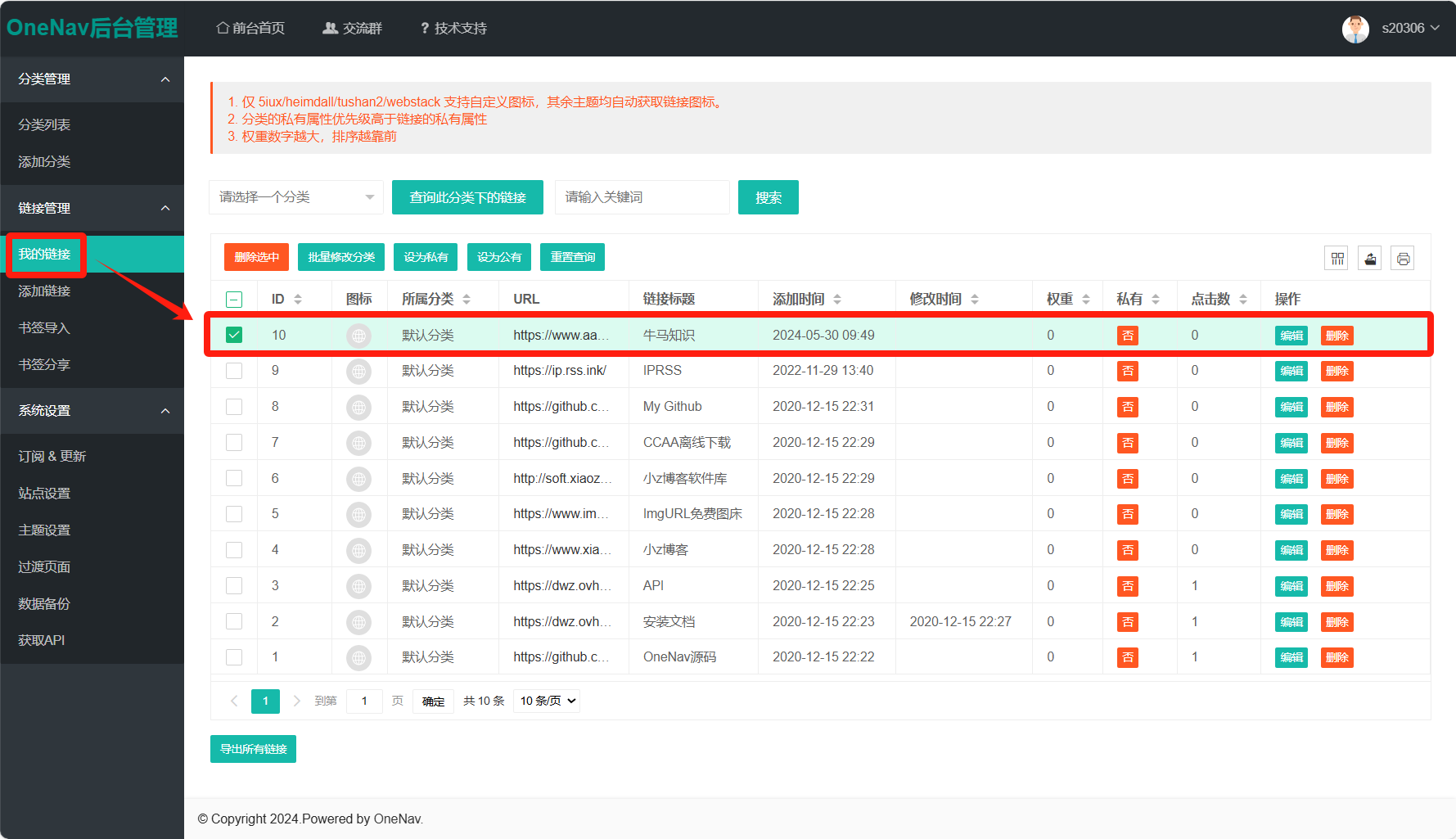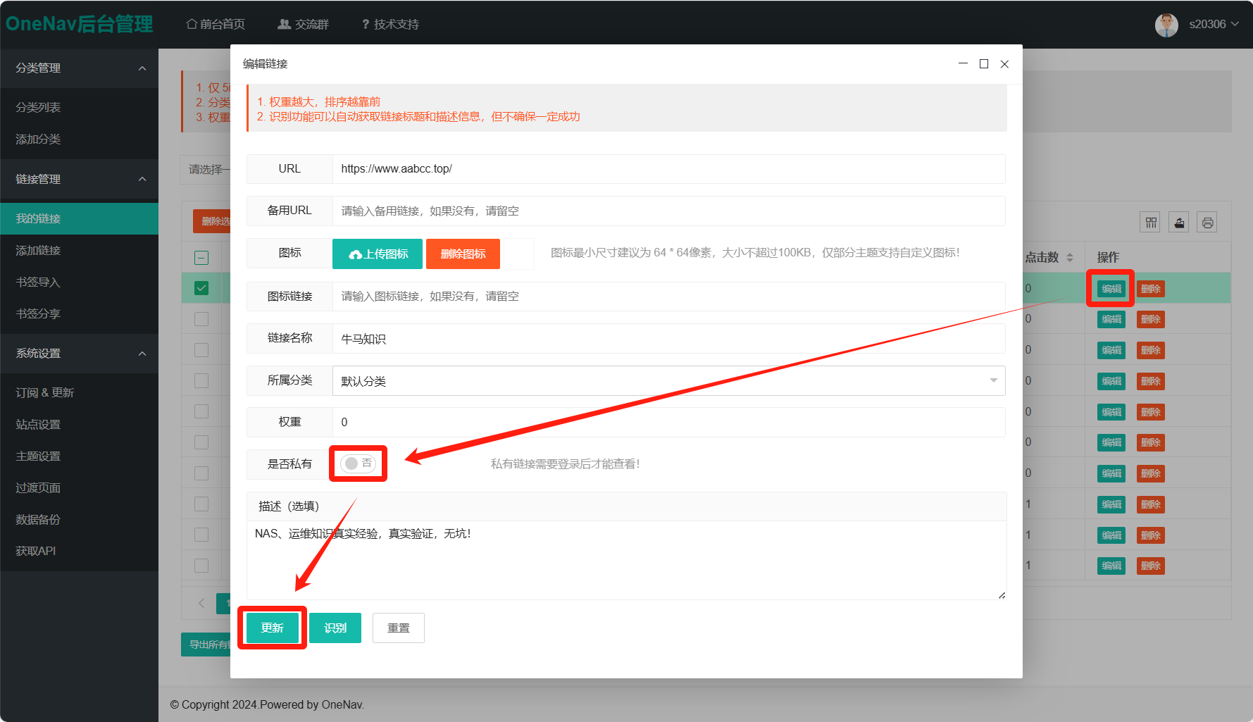 如果想设置为私密链接,那就点击对应链接的编辑,选择是否私有,然后更新。