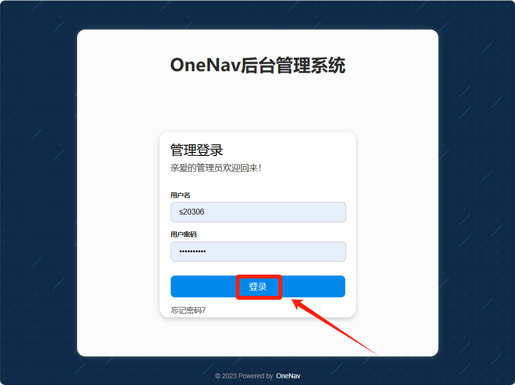#第一个86端口是容器外部访问端口,可以自己更改。 #将/volume1/docker/onenav换成你自己的实际文件夹路径 docker run -itd --name="onenav" -p 86:80 \ -v /volume1/docker/onenav:/data/wwwroot/default/data \ helloz/onenav:latest查看正在运行的容器