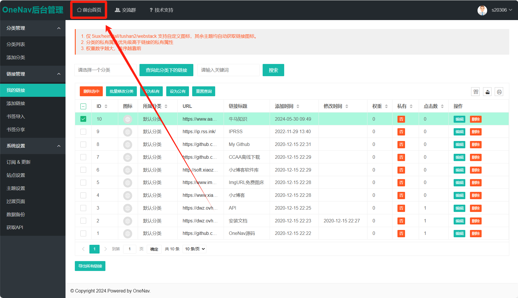 点击我的链接,就可以在上面看到我们刚刚添加的网站导航。