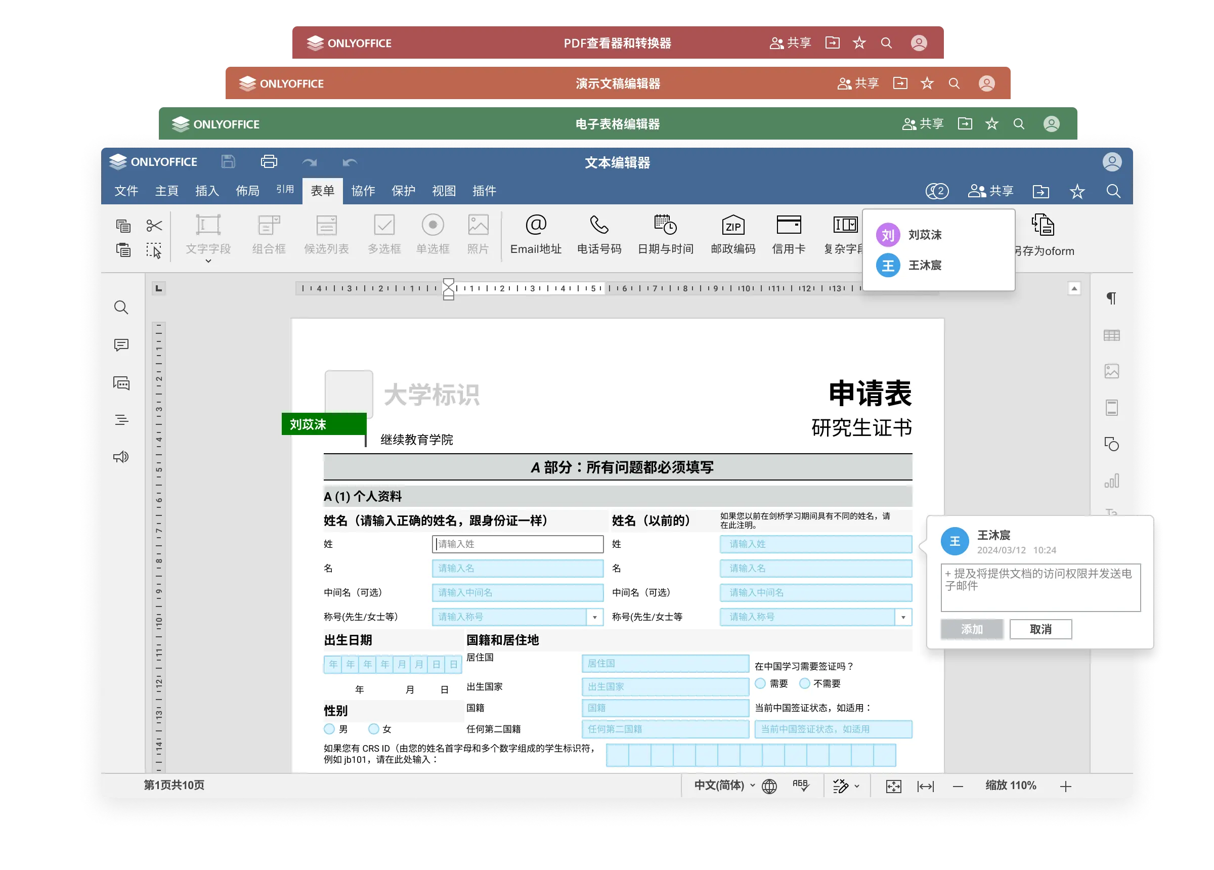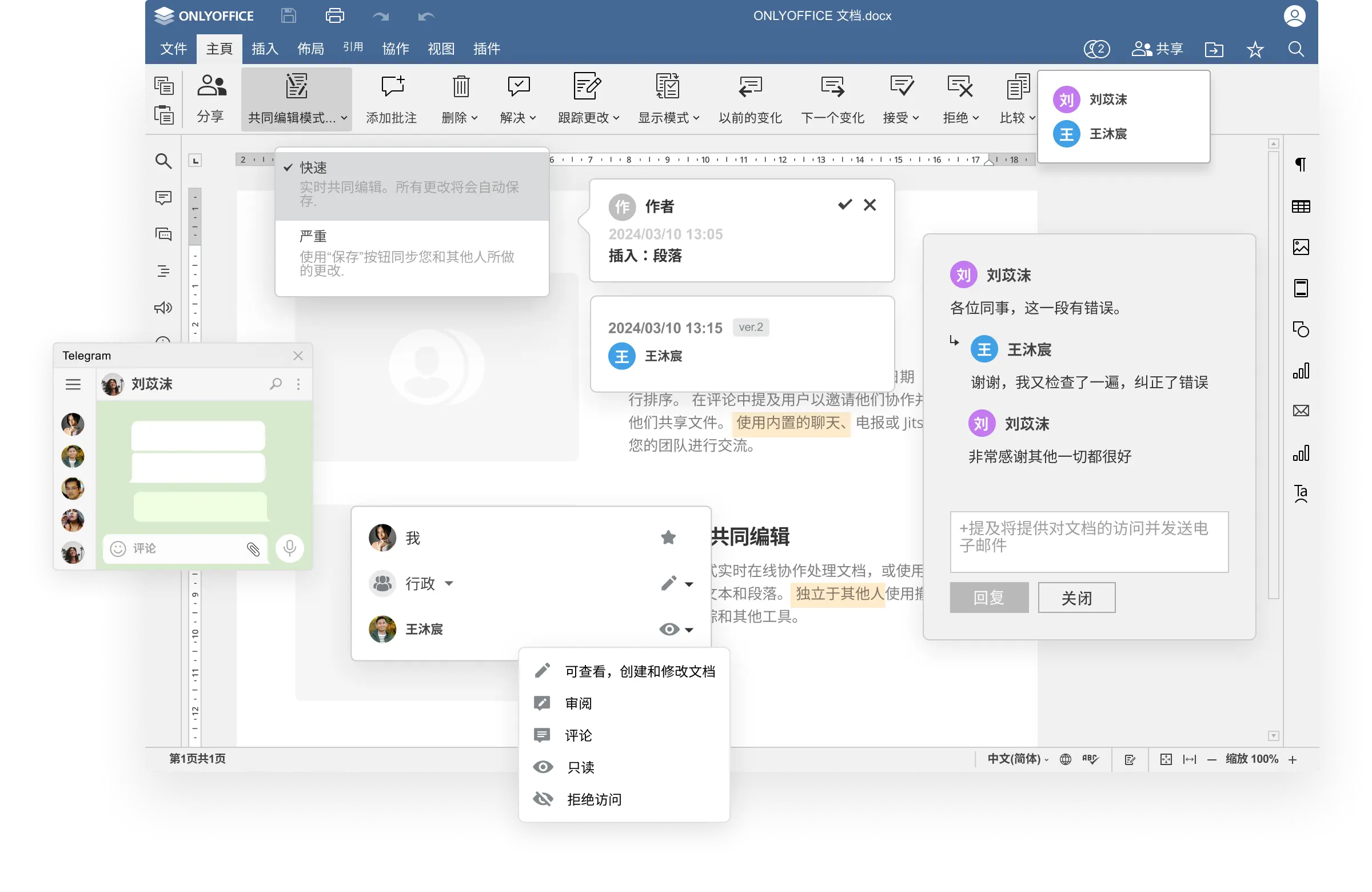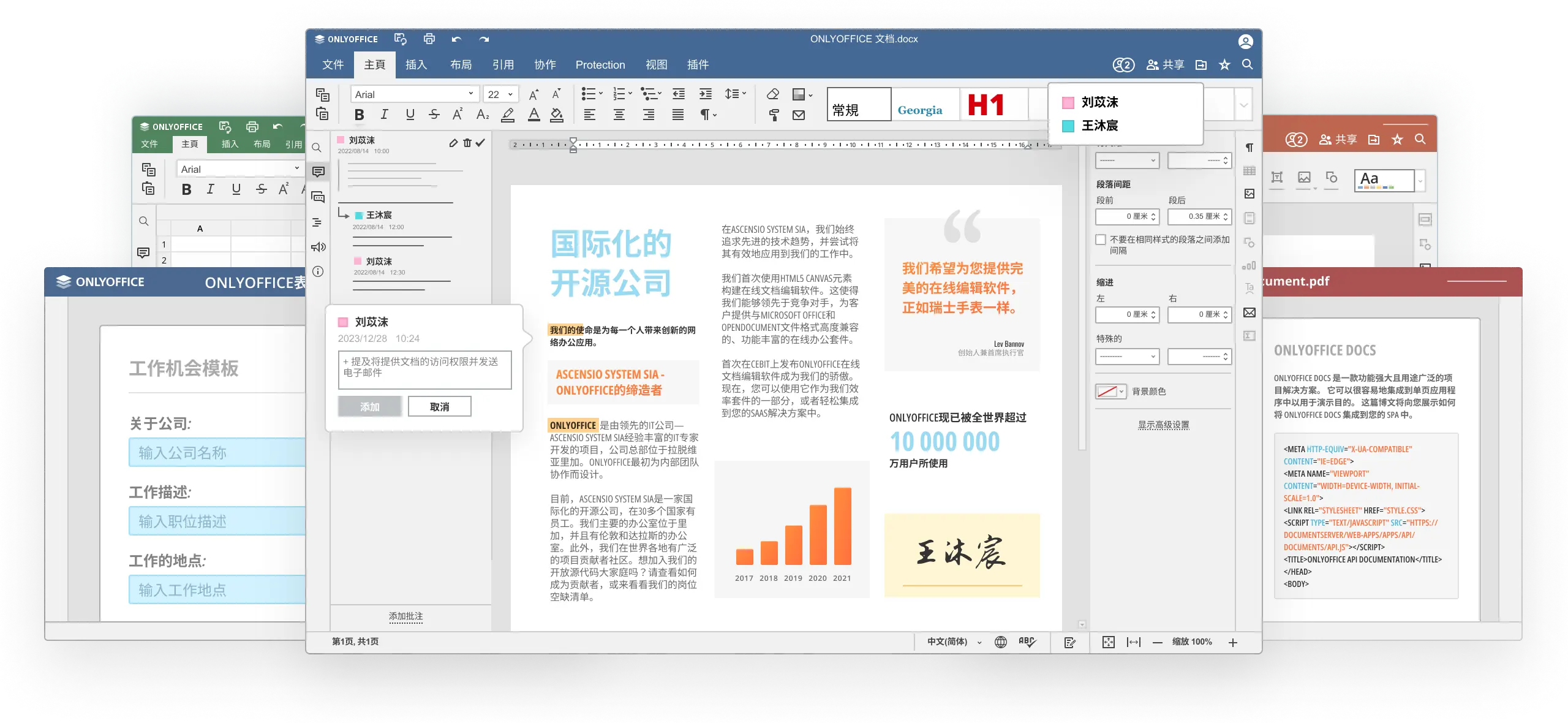 ONLYOFFICE提供了丰富的功能,使用户能够在云端进行协作办公。以下是其主要功能:
