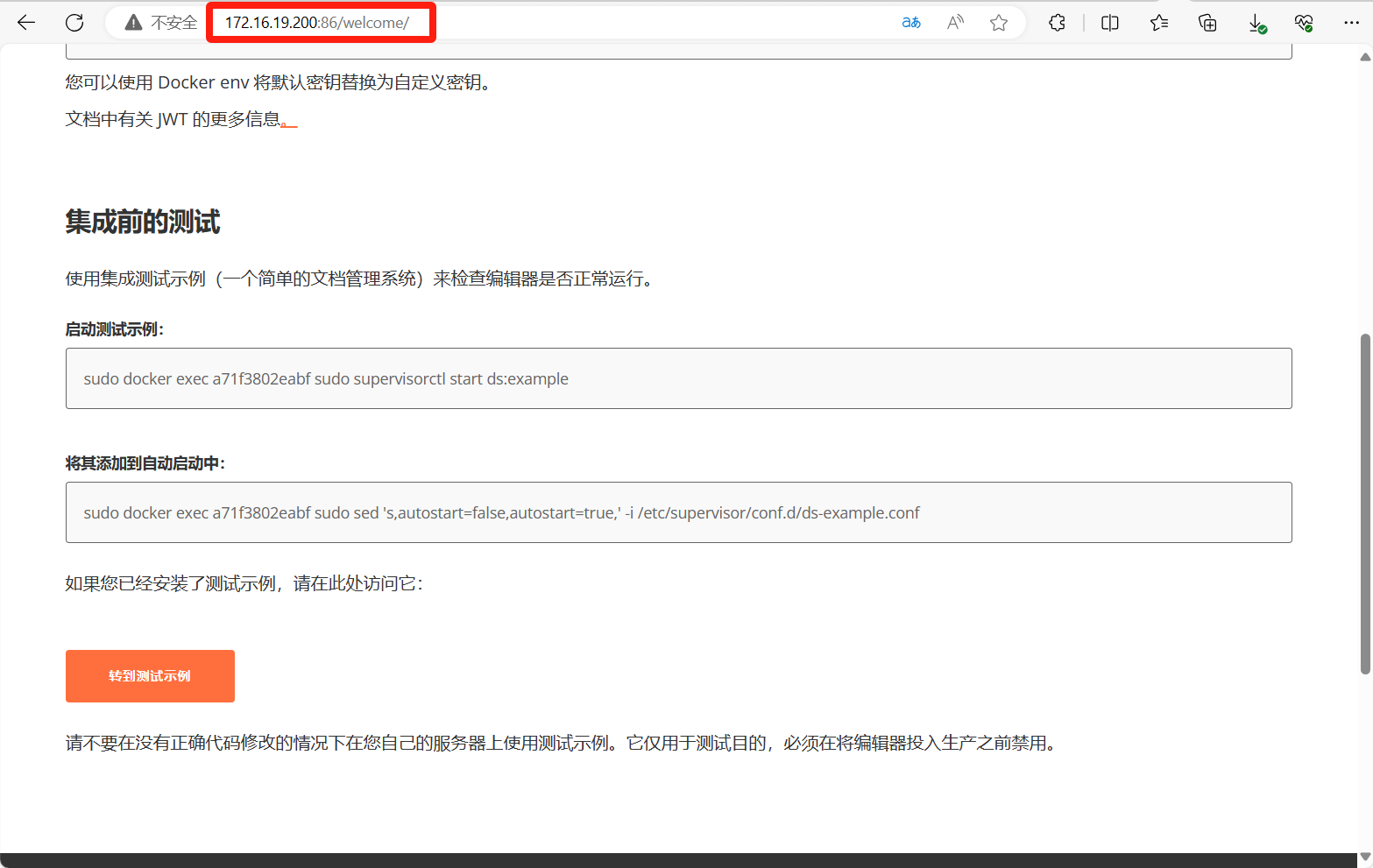 version: "3" services: documentserver: stdin_open: true tty: true ports: - 86:80 #第一个86端口是容器外部访问端口,可自行修改。 restart: always volumes: - ./DocumentServer/logs:/var/log/onlyoffice - ./DocumentServer/data:/var/www/onlyoffice/Data - ./DocumentServer/lib:/var/lib/onlyoffice - ./DocumentServer/db:/var/lib/postgresql environment: - JWT_SECRET=S20306 # S20306是指定的 JWT 密钥,可自行修改。 image: onlyoffice/documentserver -