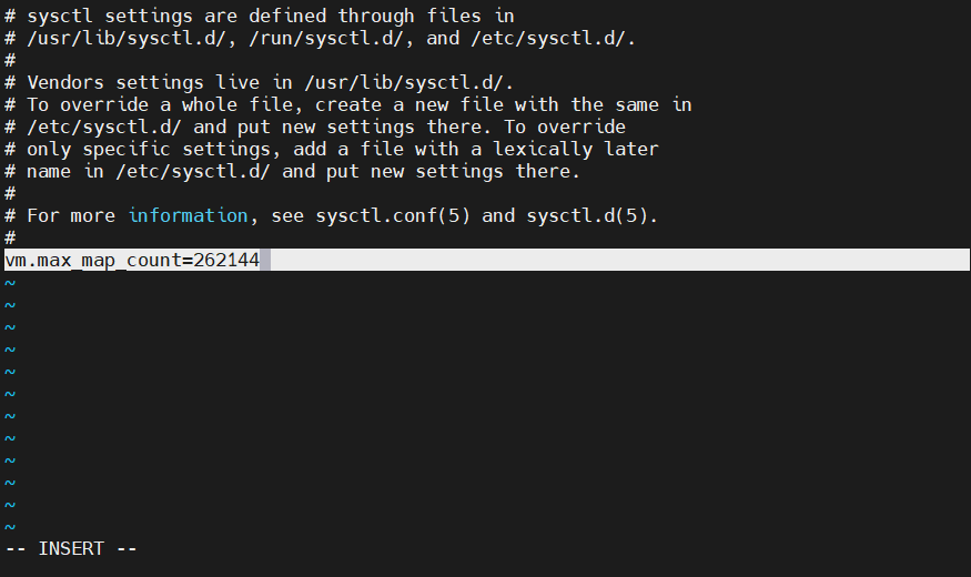如果vm.max_map_count的值小于262144,可以进行重置:vm.max_map_count