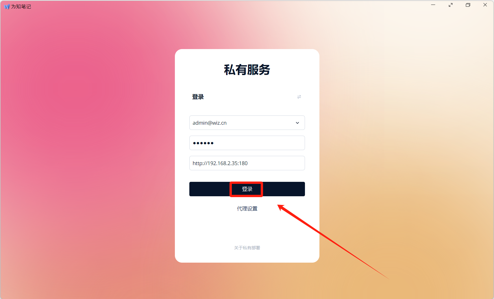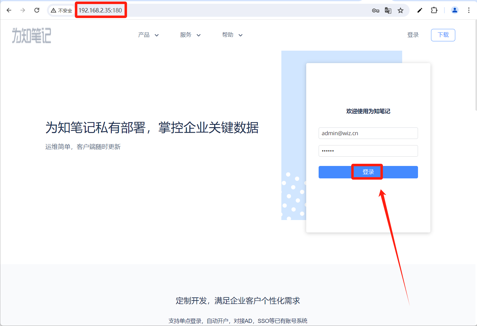 version: "3" services: wizserver: container_name: wiz restart: always stdin_open: true tty: true volumes: - ./data:/wiz/storage #前面的./data是当前文件夹内的data文件夹,你可以改成完整的文件夹路径(改了就不需要前面的.符号了。 - /etc/localtime:/etc/localtime:ro #映射本地时间给容器只读权限 ports: - 180:80 #前面的180端口是容器的外部访问端口,你可以自己修改。 - 9269:9269/udp #前面的第一个9269端口是容器的外部连接udp端口,建议保持默认。 image: wiznote/wizserver执行命令,启动docker-compose文件,拉取镜像并创建容器。