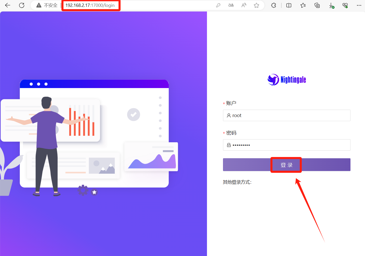 docker-compose up -d #如果提示mysqldata文件夹不存在,就执行下面的两个命令创建后再重新启动。 #创建mysqldata文件夹 mkdir mysqldata #对项目文件夹进行授权读写权限(实际生产情况下请勿使用777权限。 chmod -R 777 /opt/nightingale -