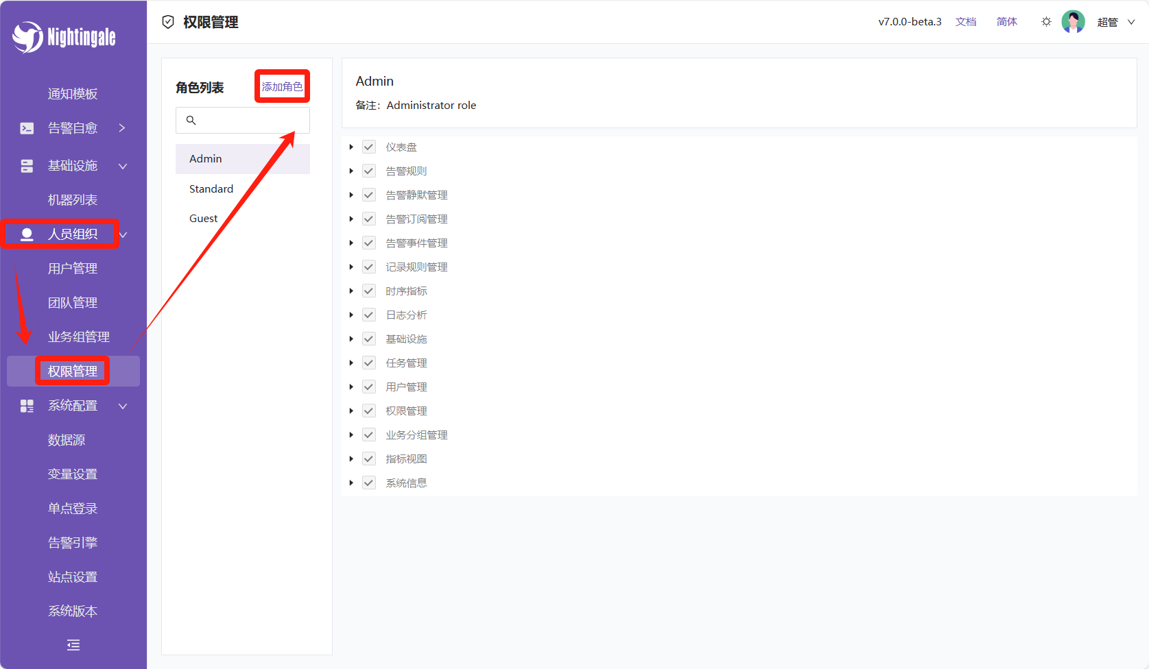点击用户管理,新增一个非全权限的管理员用户,并分配角色。(可选)