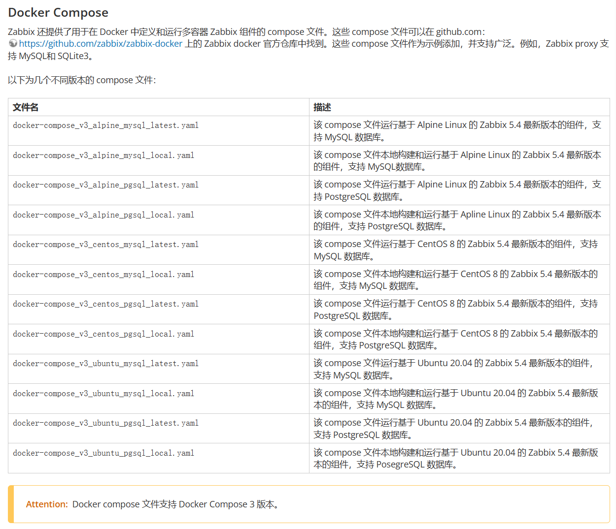 官方文档地址:https://www.zabbix.com/documentation/current/zh/manual/installation/containers#docker-compose