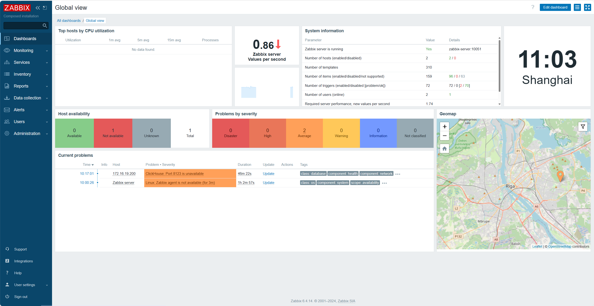 Zabbix如果部署在服务器上,可以监控其CPU、内存、网络性能等硬件参数,也可以监控具体的服务或者应用程序、服务运行情况及性能。