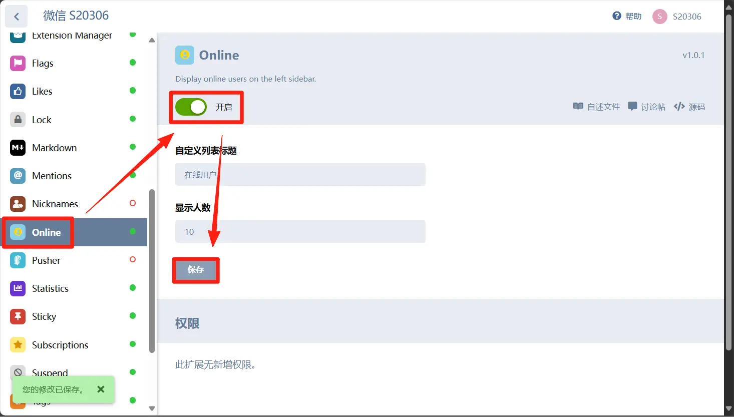 回到论坛首页后刷新即可看到插件