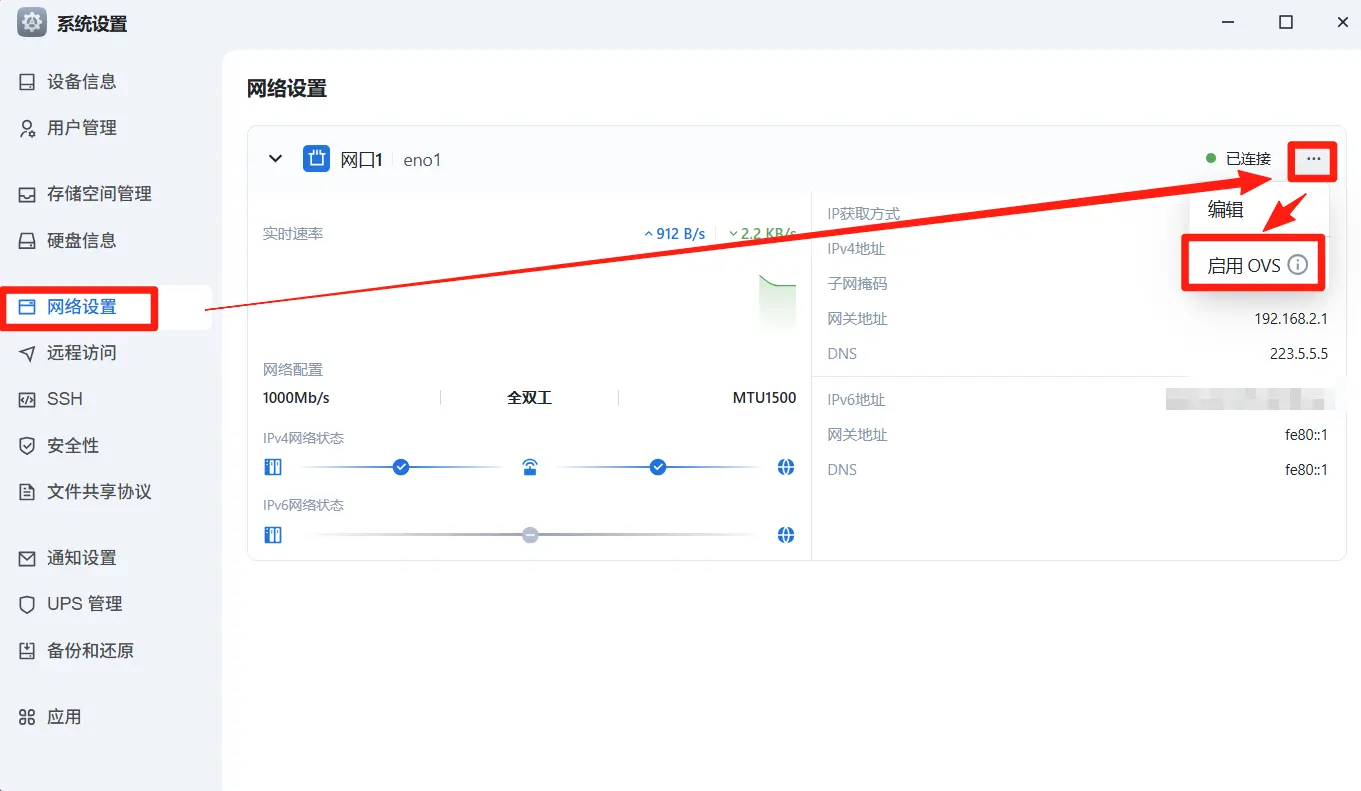 如果是单网口,启用 OVS