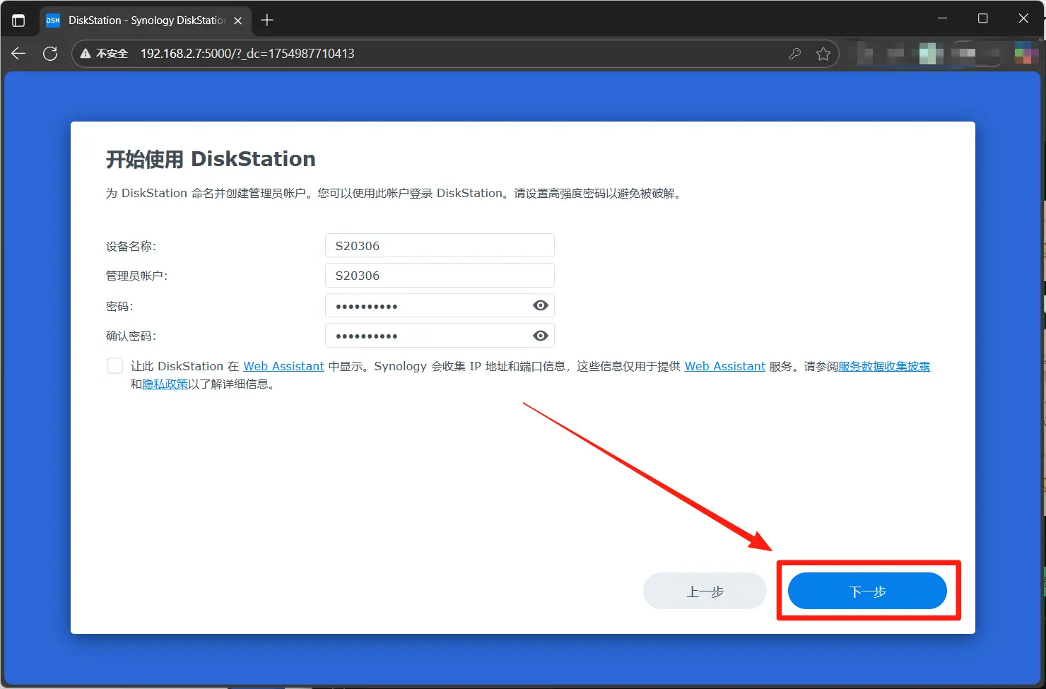 http://<NAS-IP>:5000按提示安装系统