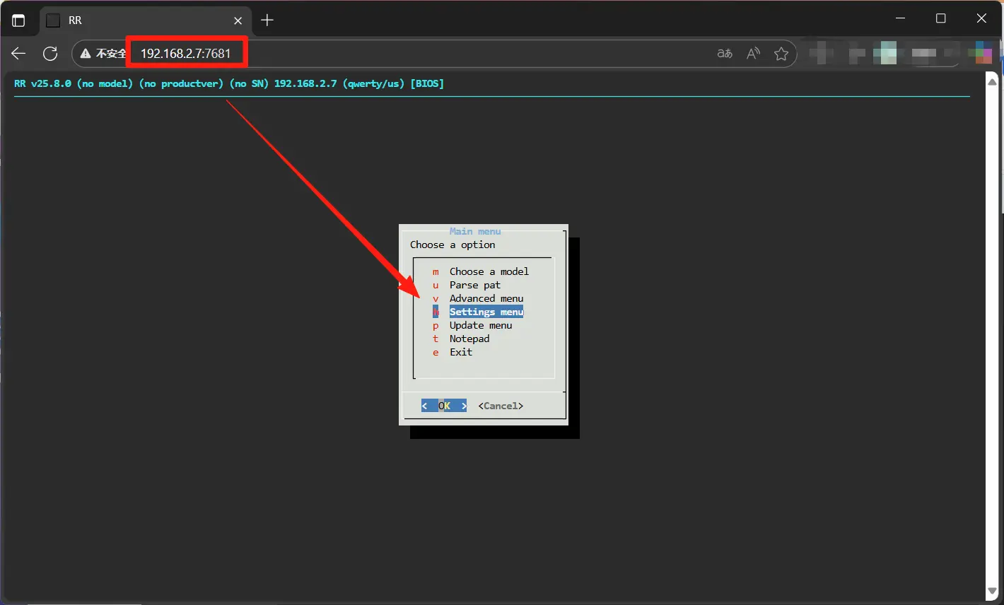浏览器访问刚才的 VNC 地址 → 进入 Setting menu