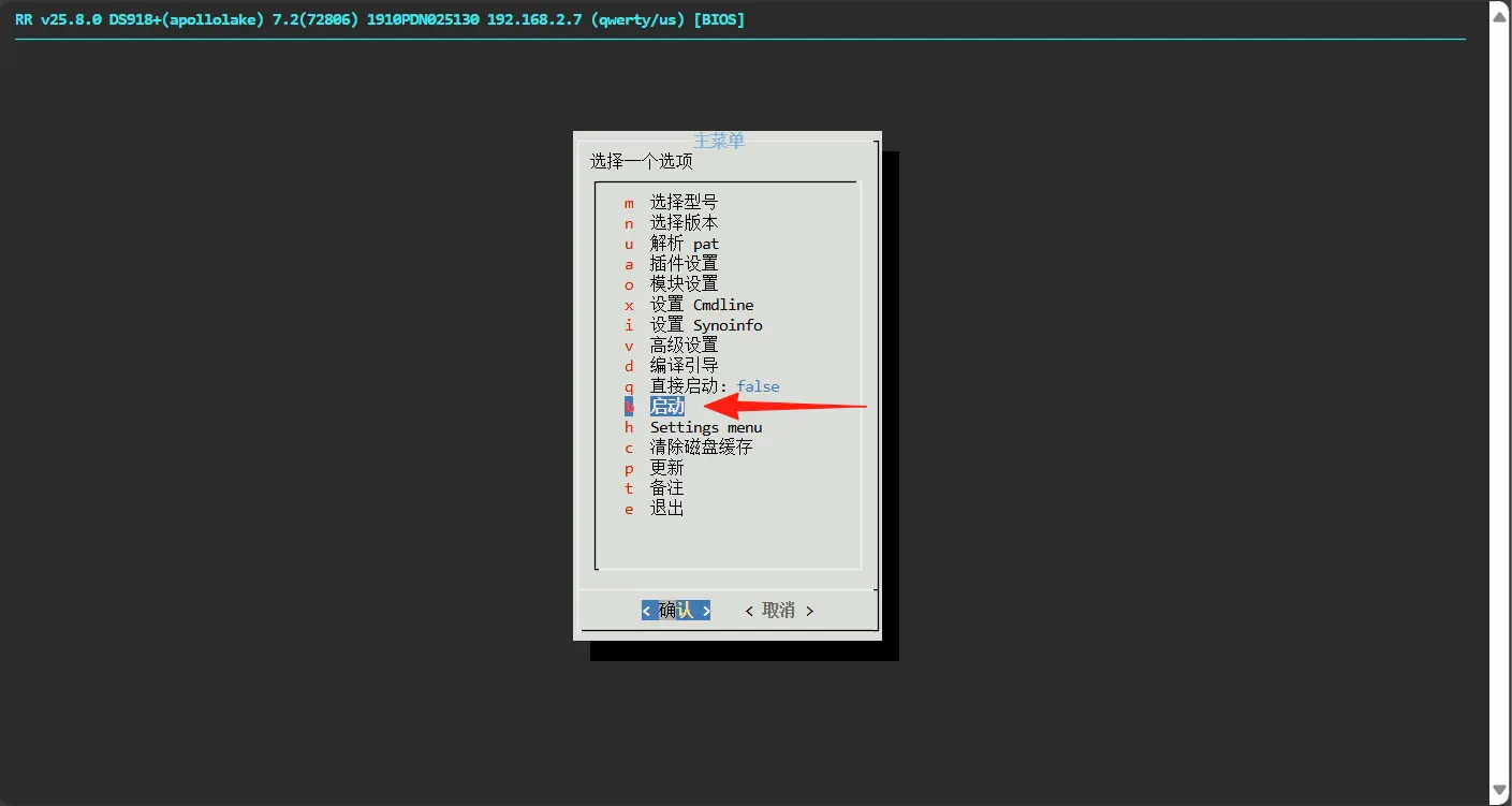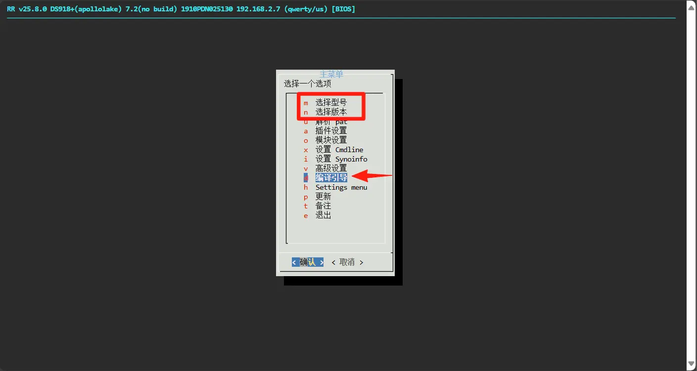 返回菜单 → 选择需要的型号与 DSM 版本 → 编译引导