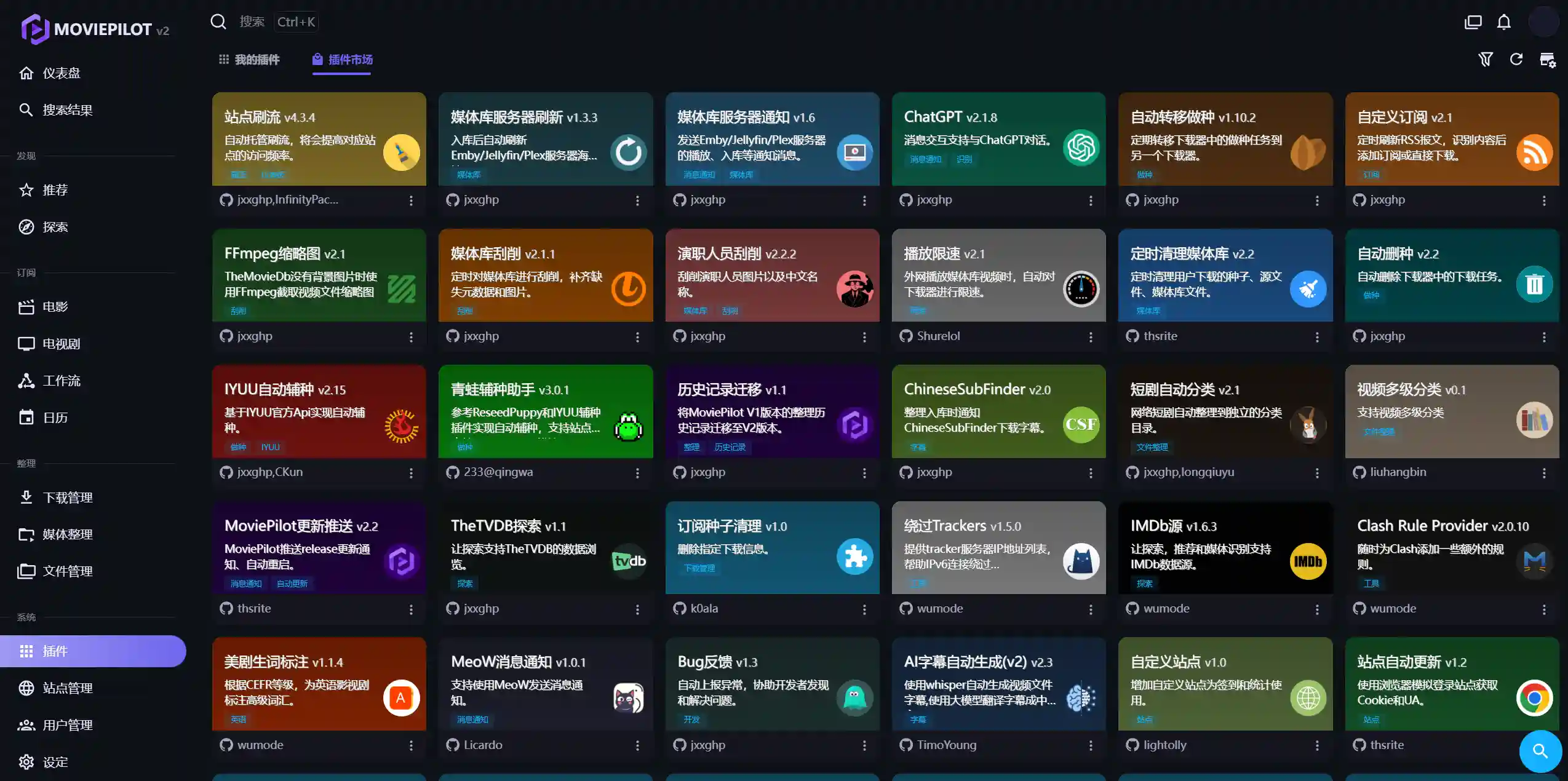 MoviePilot-v2 以“自动化”为核心,重构并强化了多项功能,形成从资源发现到播放的闭环管理,关键功能如下:
