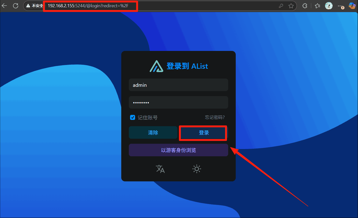 # 随机生成一个密码 docker exec -it alist ./alist admin random # 手动设置一个密码,`NEW_PASSWORD`是指你需要设置的密码 docker exec -it alist ./alist admin set NEW_PASSWORD # 例如设置密码为password docker exec -it alist ./alist admin set password -