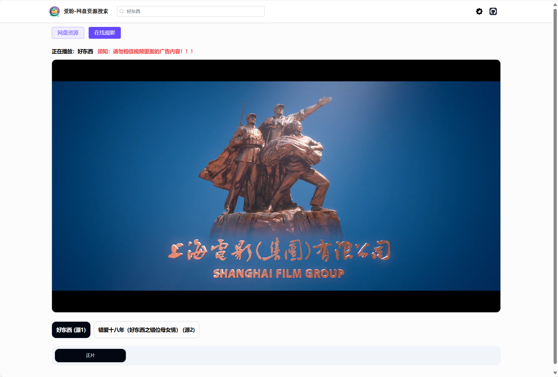 点击一个影片会自动搜索资源,我们也可以点击在线观影选项。