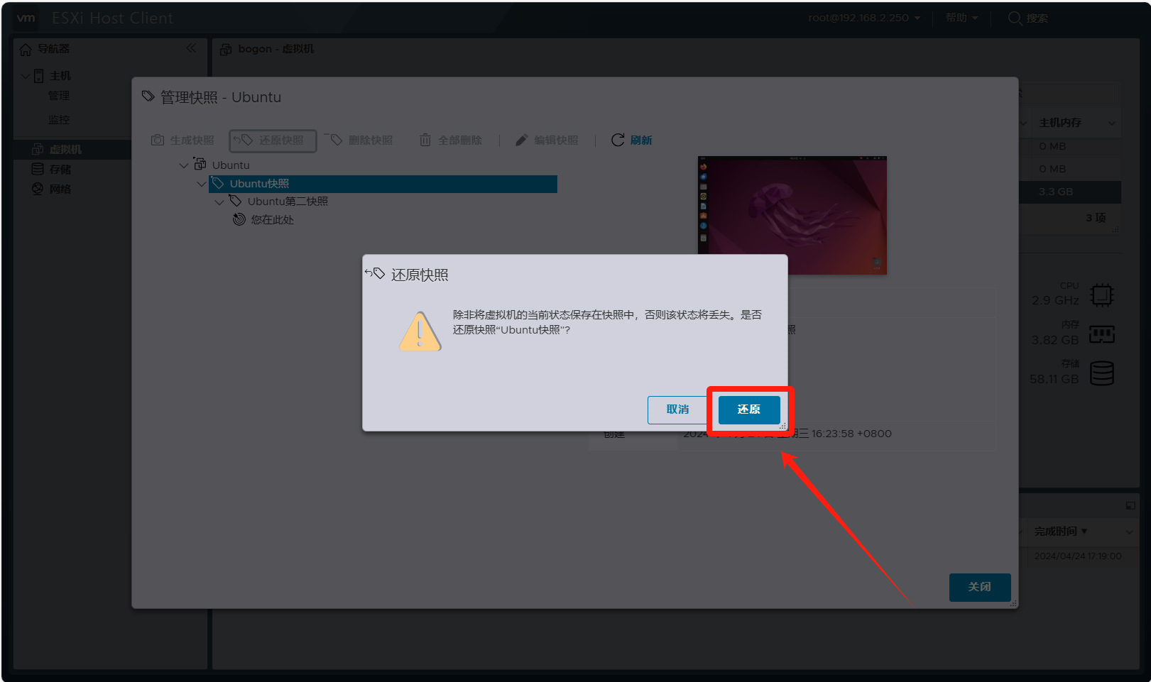 恢复虚拟机快照