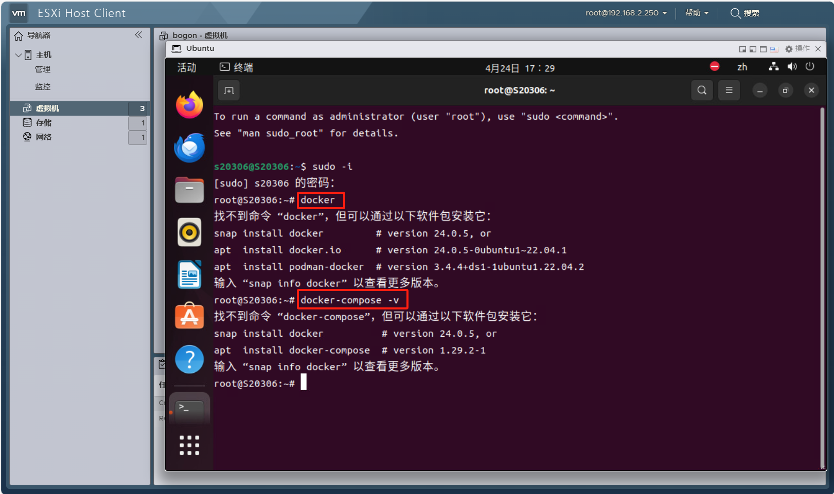 进入虚拟机内测试docker和docker-compose