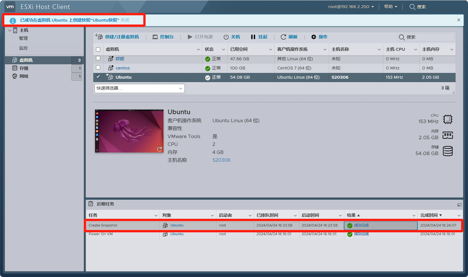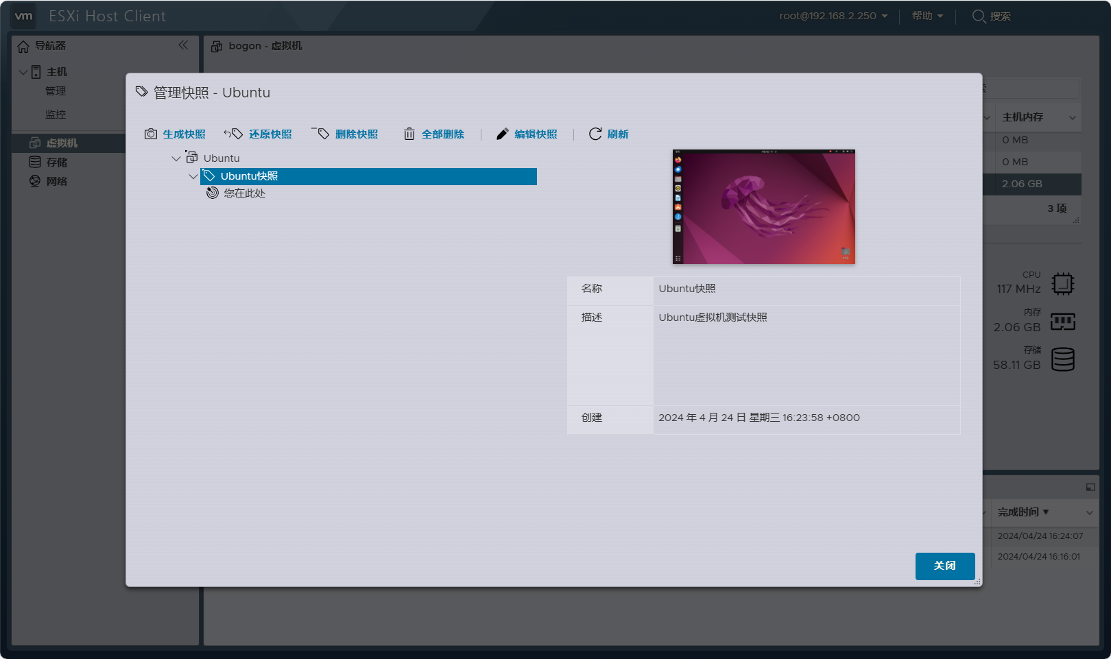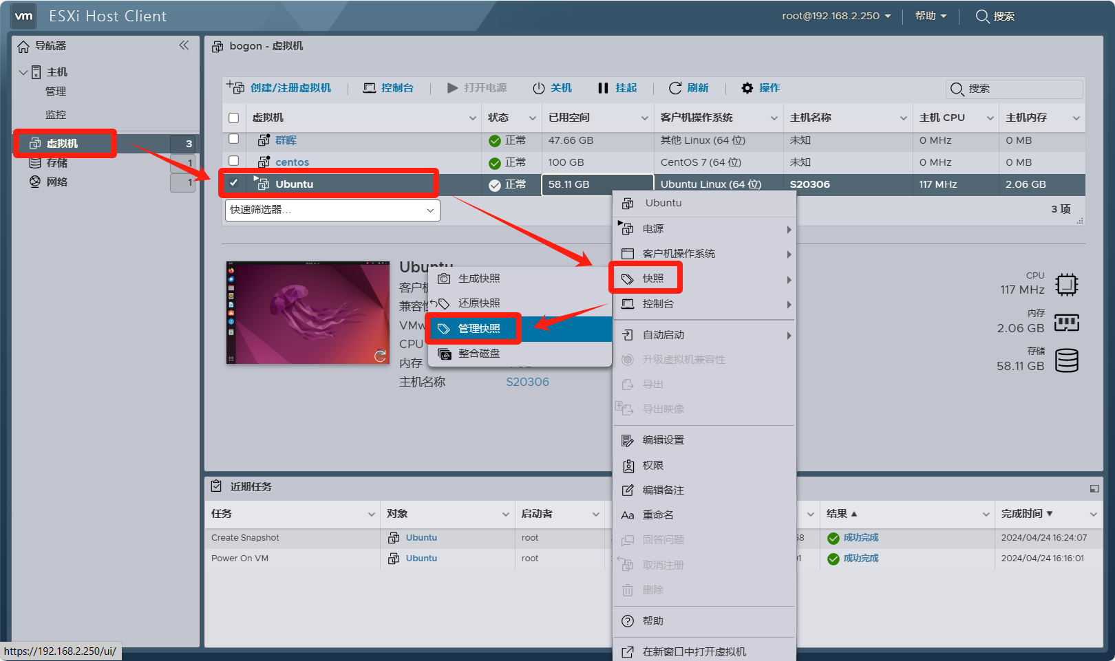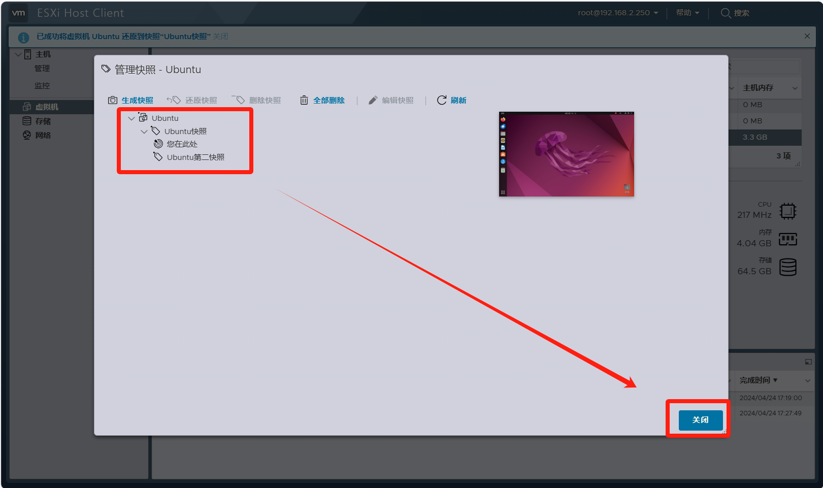 VMware ESXI 虚拟机 创建/还原 快照
