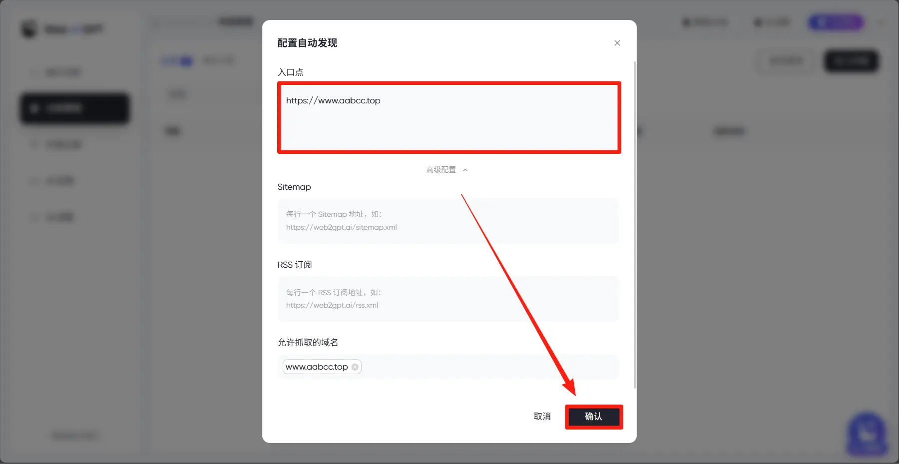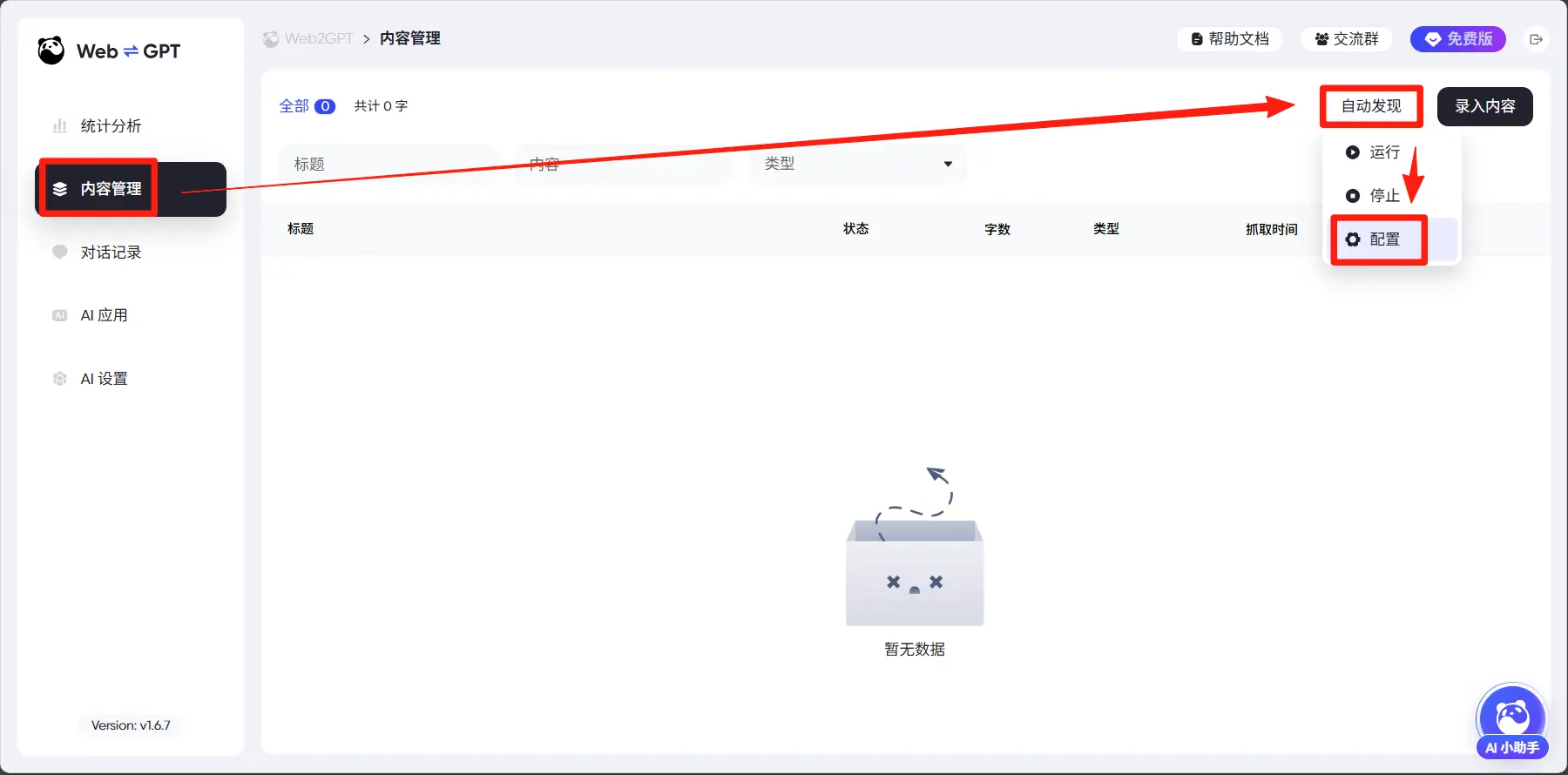 采集内容:输入网站地址,Web2GPT 自动采集网站内容。