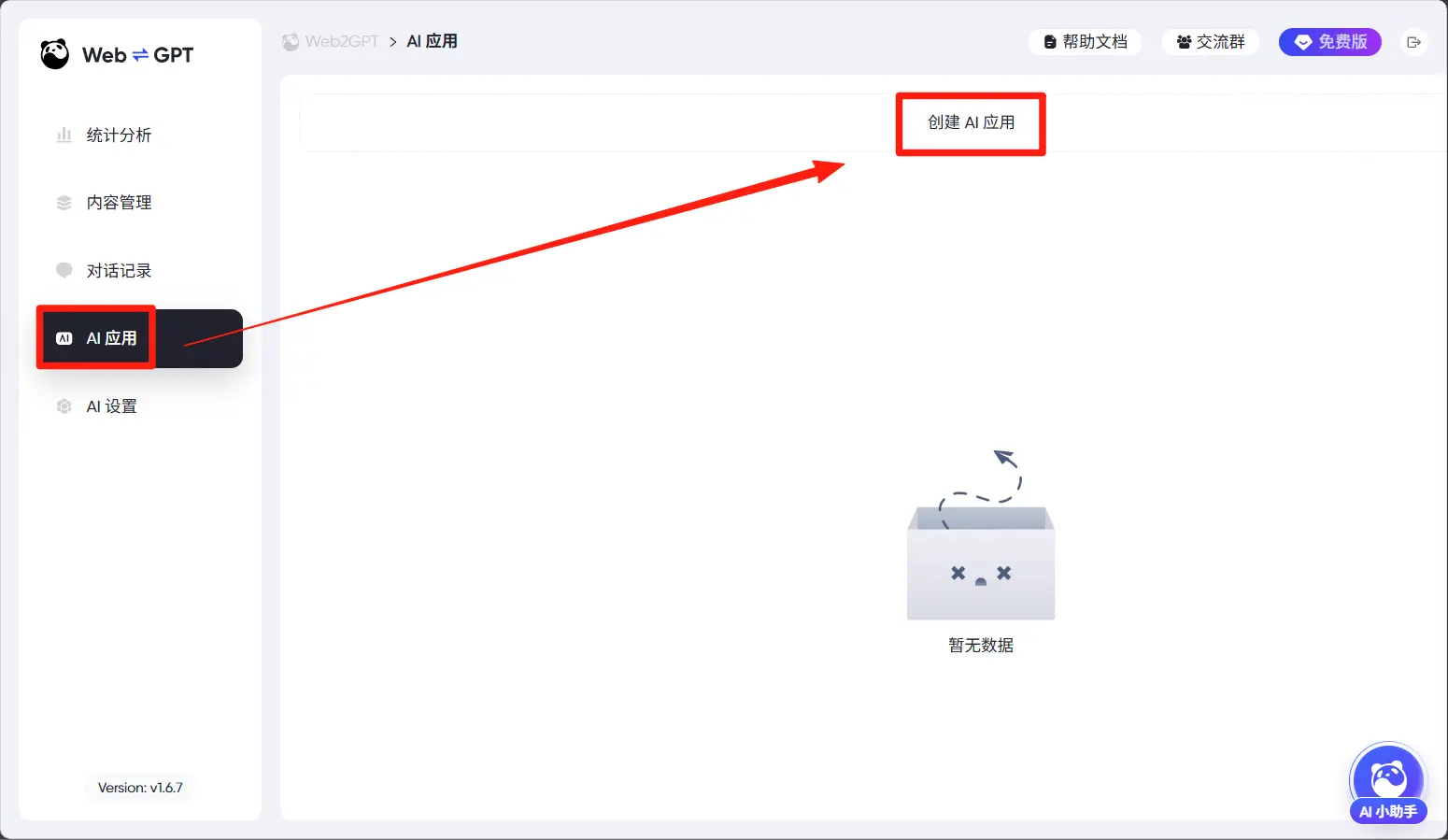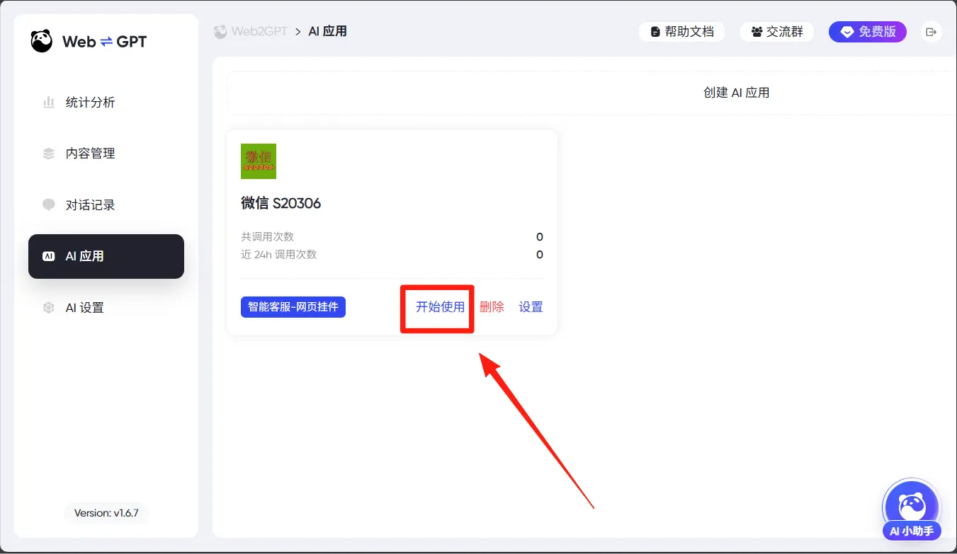 创建应用:基于学习内容,创建属于你的网站 AI 应用。