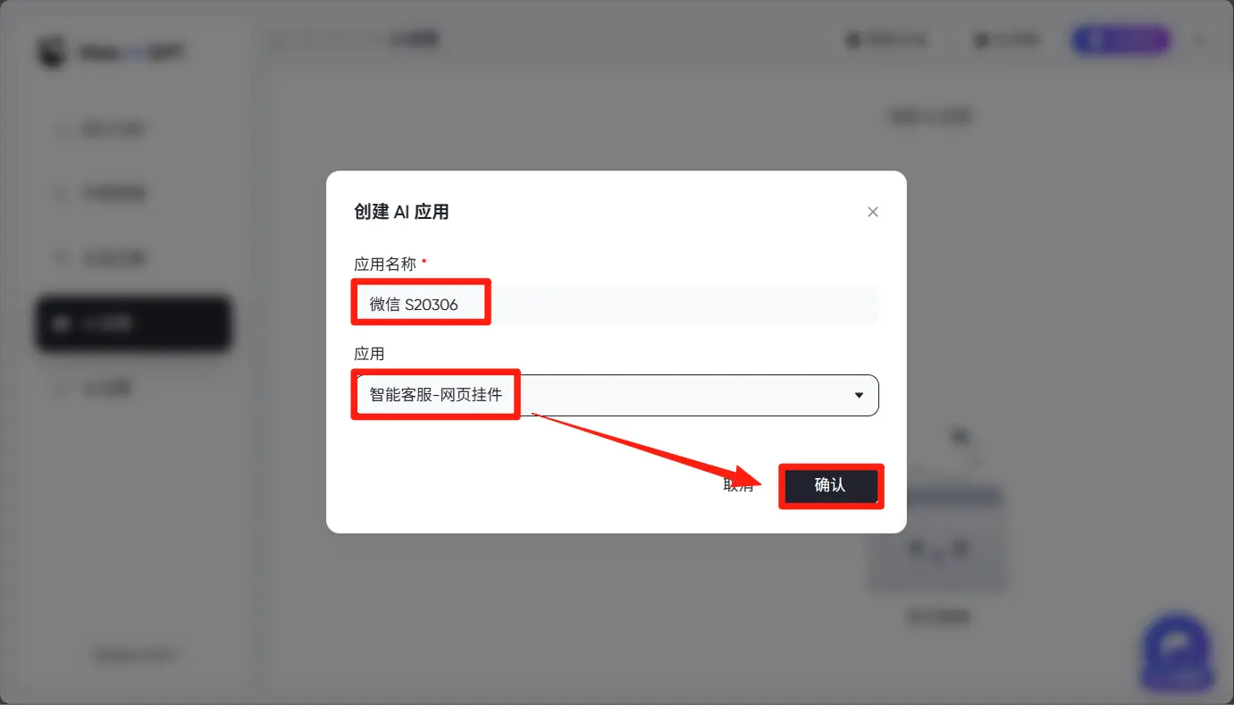 创建 AI 应用,通过挂件或机器人快速集成到业务系统