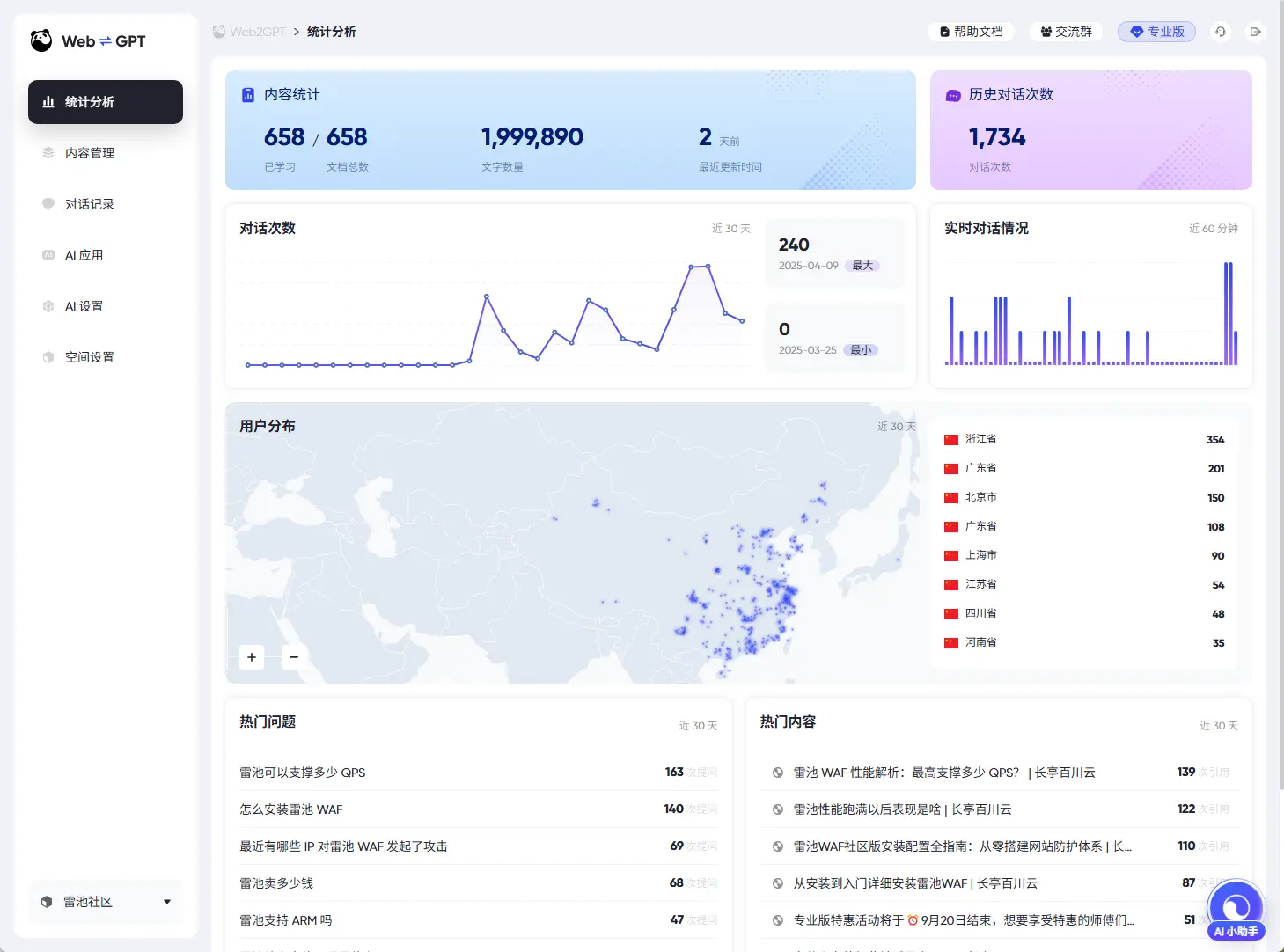 我这个人做事讲效率,也看重安全。雷池 WAF 我一直在用,Web2GPT 的思路和配置都比较清楚,上手不费劲。下面就是我整理的图文教程,按步骤带你把网站变成能对话、能办事的应用,让用户不用再满站点翻来翻去找信息。